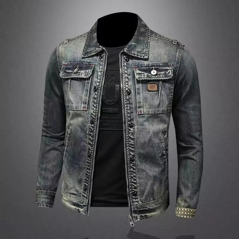 Spring and Autumn Fashion Trend American Retro Motorcycle Denim Jacket Men's Casual Loose Sports Large Size High-Grade Jacket