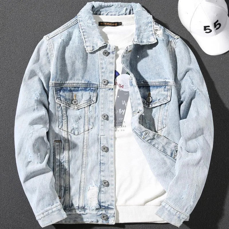 Spring and Autumn New Fashion Trend Retro Ripped Sports Denim Jacket Men's Loose Comfortable Large Size High Quality Coat M-4XL