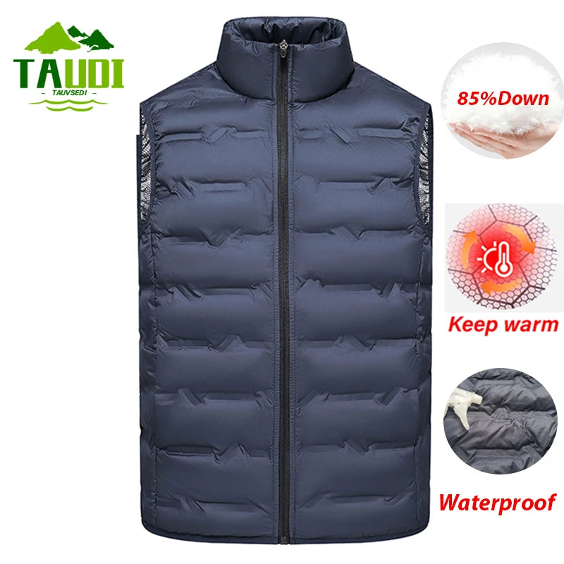 Winter Men Down Vests Mens waterproof Fashion Casual Down Sleeveless Vest Jackets Mens Autumn Couple Lightweight Work Waistcoat