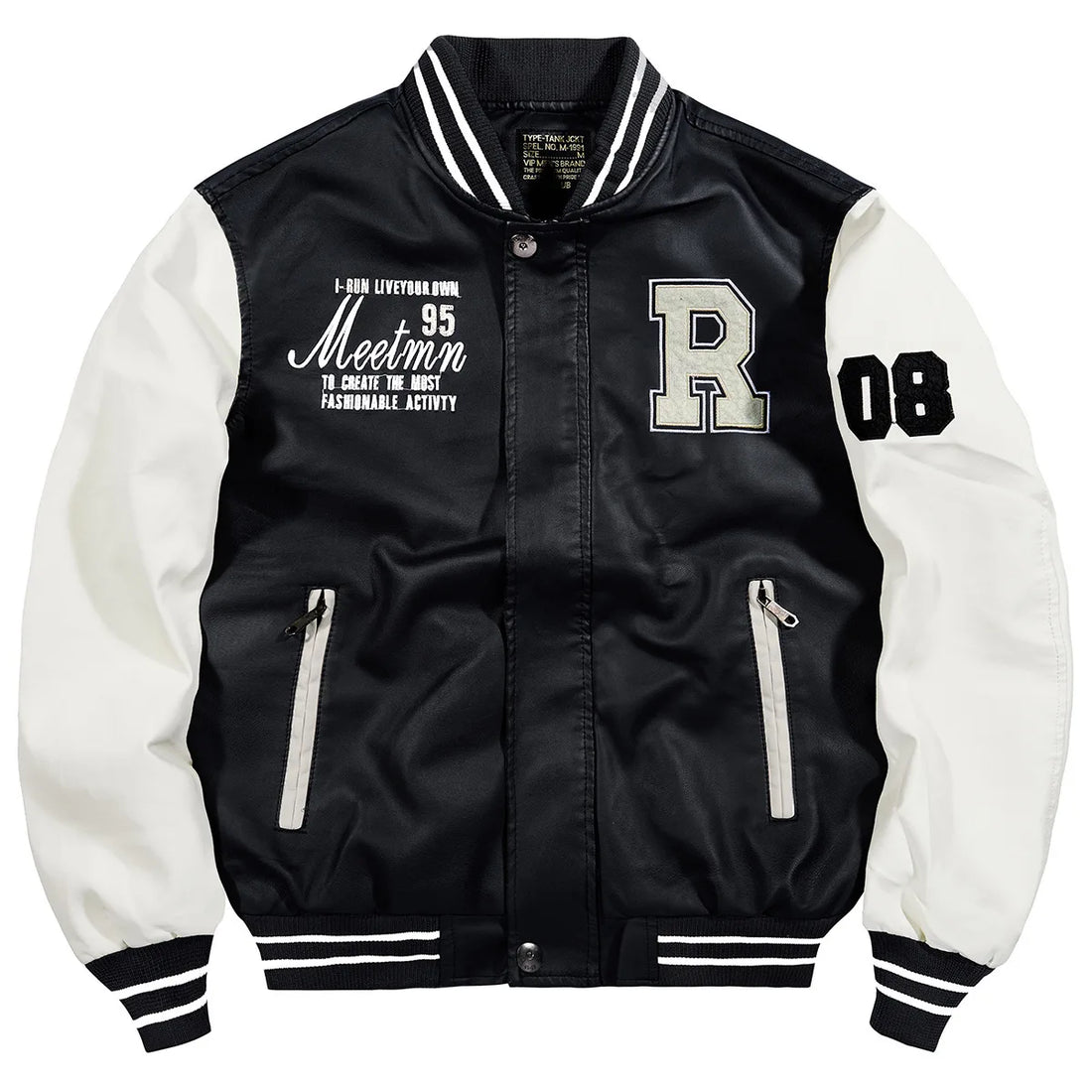 Winter Embroidered Leather PU Jacket Mens Leather Coat Pilot Casual Fleece Stand Collar CoatWinter Down Jackets Baseball Parkas