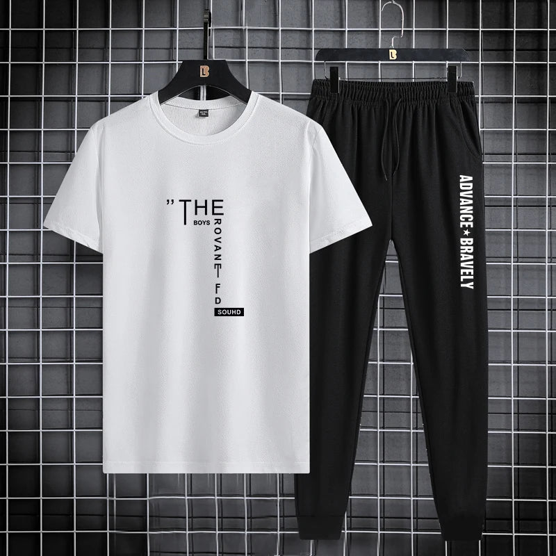 Trendy printed men's sports suit, summer casual T-shirt, leggings, two piece set, thin and breathable, solid color 2024 new prod