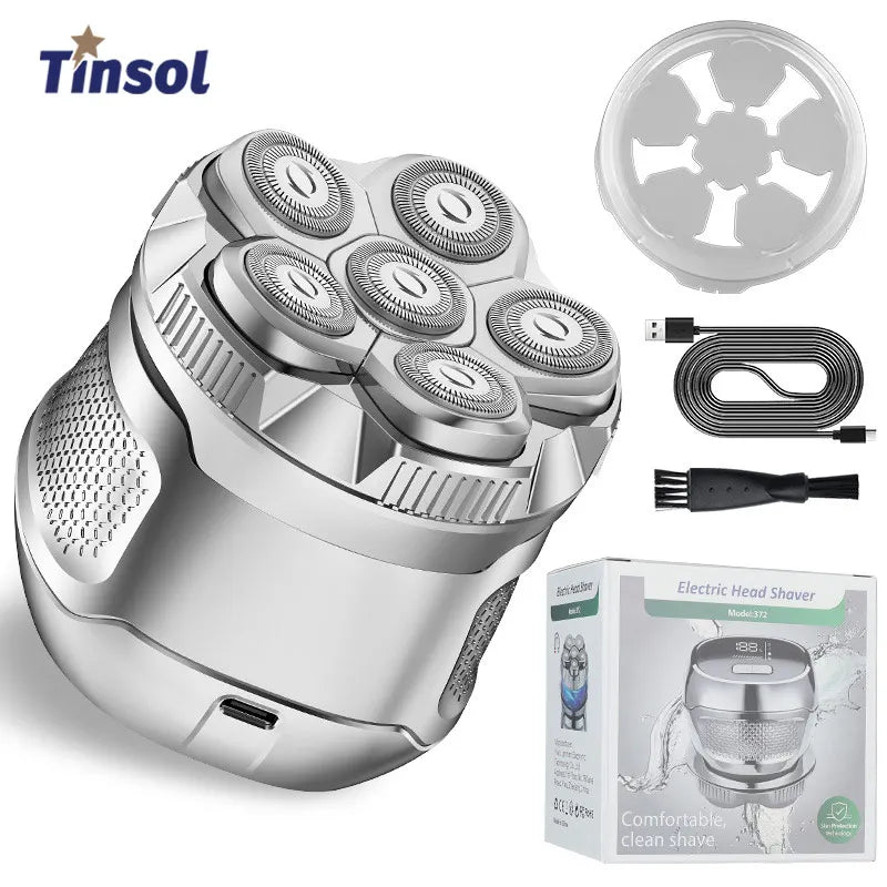 Tinsol New Bald Men's Titanium Electric Hair Clipper Razor 6D Magnetic Hair Trimmer Rechargeable Waterproof Facial Repairer