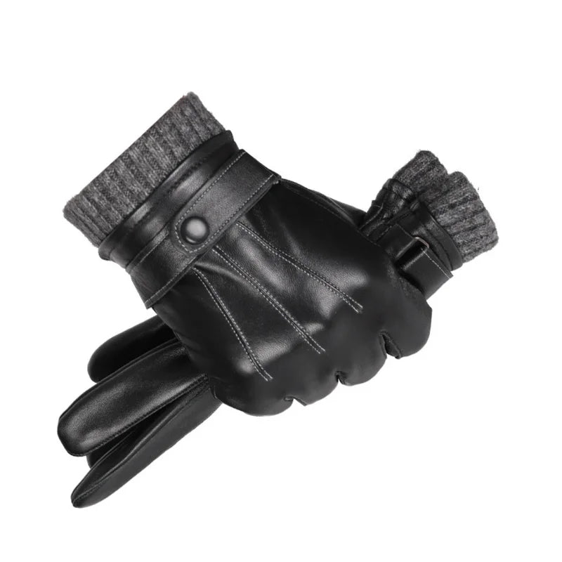 Winter Gloves for Men Genuine Leather Gloves Warm Plus Velvet Touch Screen Gloves Outdoor Cycling Driving Motorcycle PU Gloves