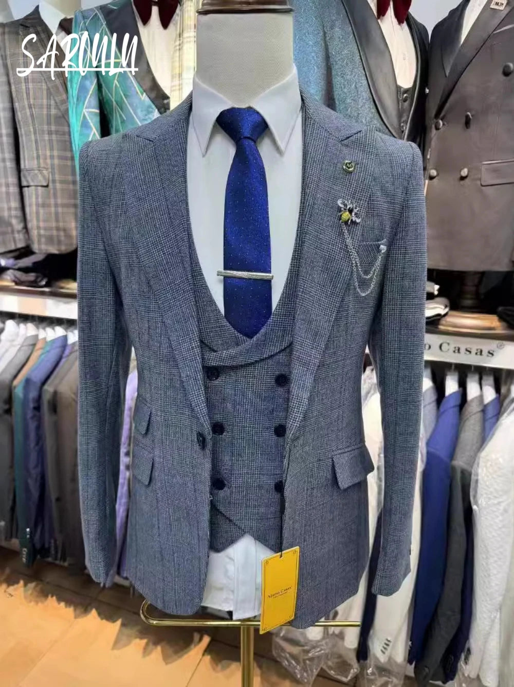 ST Cassy High Quality Plaid suit Formal Business Office Men's Suits Fashionable and Casual evening gown