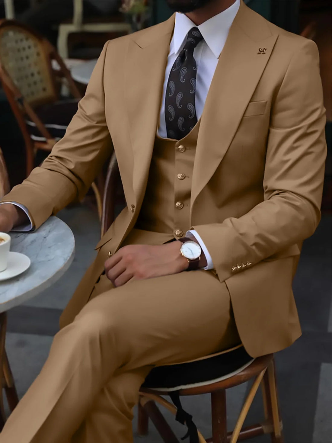 Brown Smart Casual Suit for Men Slim Fit Peaked Lapel Solid Tuxedo 3 Piece Suit for Man Costume Homme De Luxe Trajes Hombre