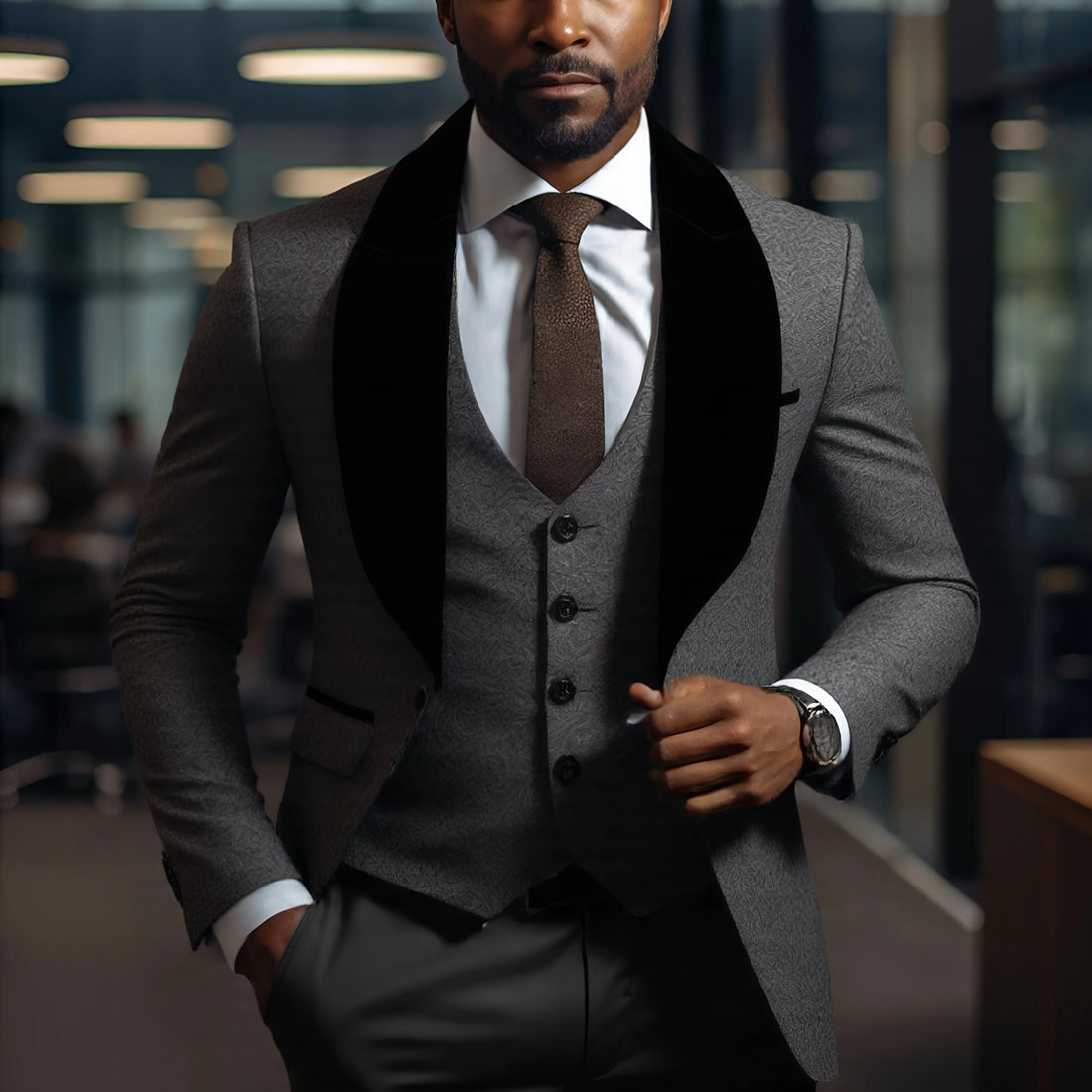 Mens 3 Piece Floral Tuxedo, Jacquard Slim Suit Set, Paisley Blazer Vest And Pants For Prom Wedding