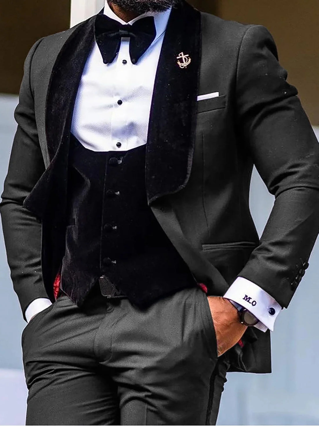 Wedding Black Luxury Suits for Men Slim Fit Velvet Shawl Lapel Solid Tuxedo Man Suit Set Trajes De Hombre Anzug Herren Men Suits