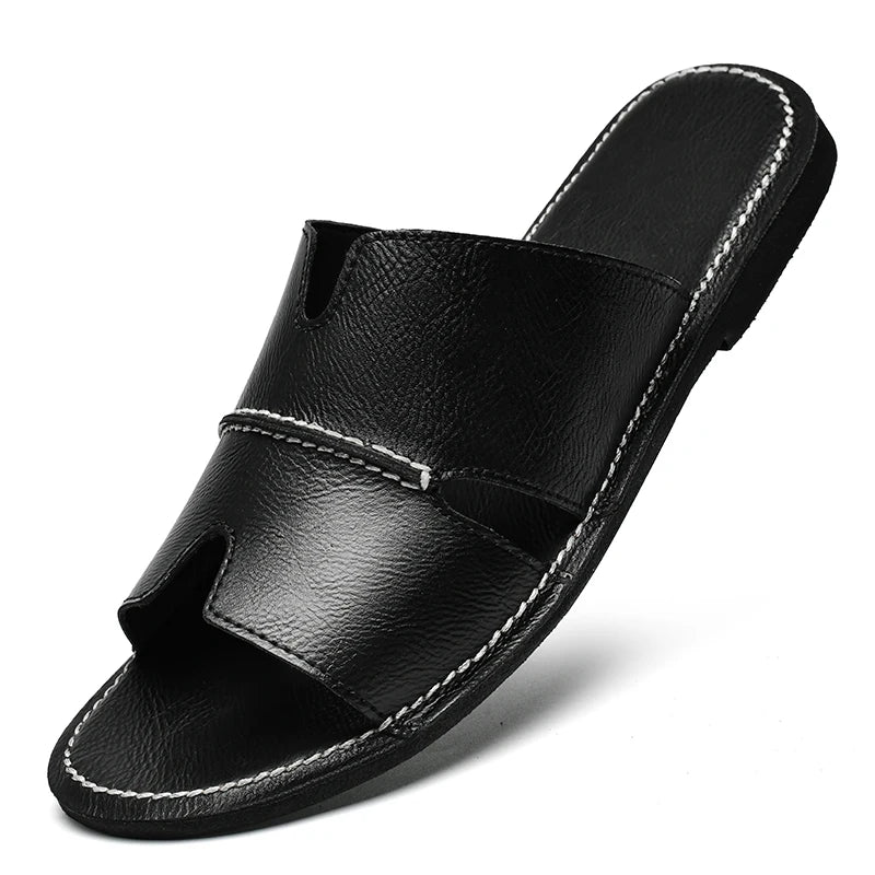 Men's New Black Fashion Cowhide Slippers Couple Style Summer Leisure Sports Sandals Comfortable Breathable Versatile Shoes Large