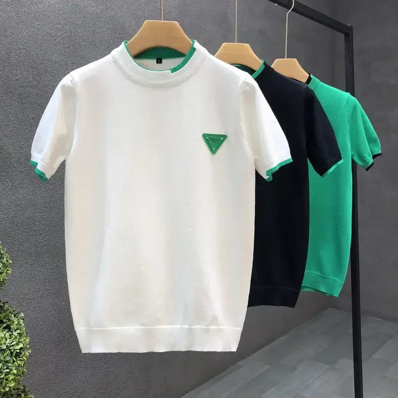 AutumnTrendy White Knit Short Sleeve Sweater For Men Trendy Inner Half Sleeve Line Sweater Casual Crew Neck T-Shirt Men's Base L