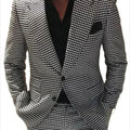 2 Piece Plaid Men Suits for Wedding Houndstooth Checkered Groom Tuxedos Male Fashion Clothes Costumes Set Jacket with Pants