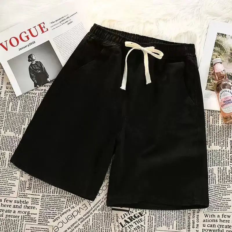 2025 new Fashion Streetwear Men's Denim Shorts Summer Loose Vintage Harajuku Splicing Hip-hop Cargo Moto Short Jeans Black Blue