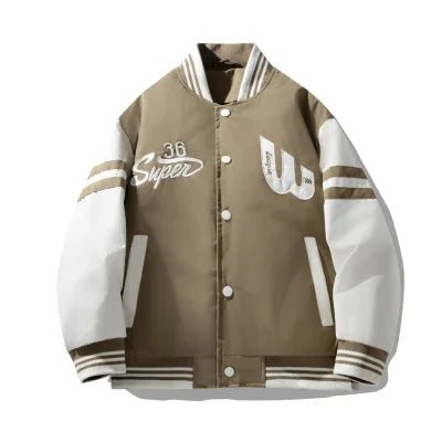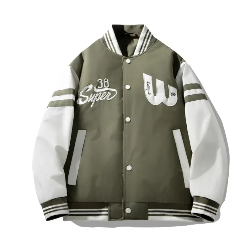 2025new Trendy Contrast Color Baseball Uniform Striped Casual Fashion Jacket Men College Style Thread Trendy Jacket Men