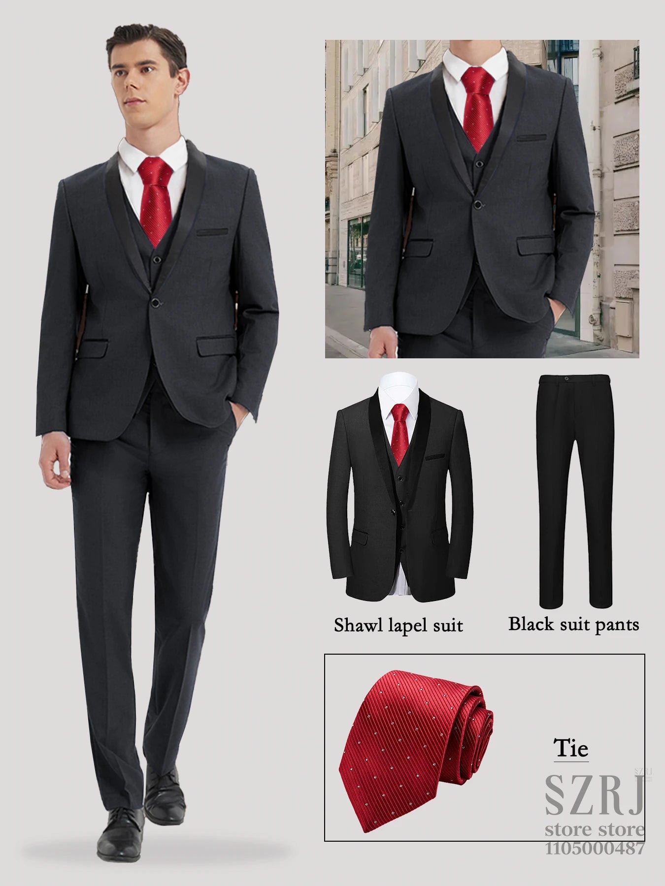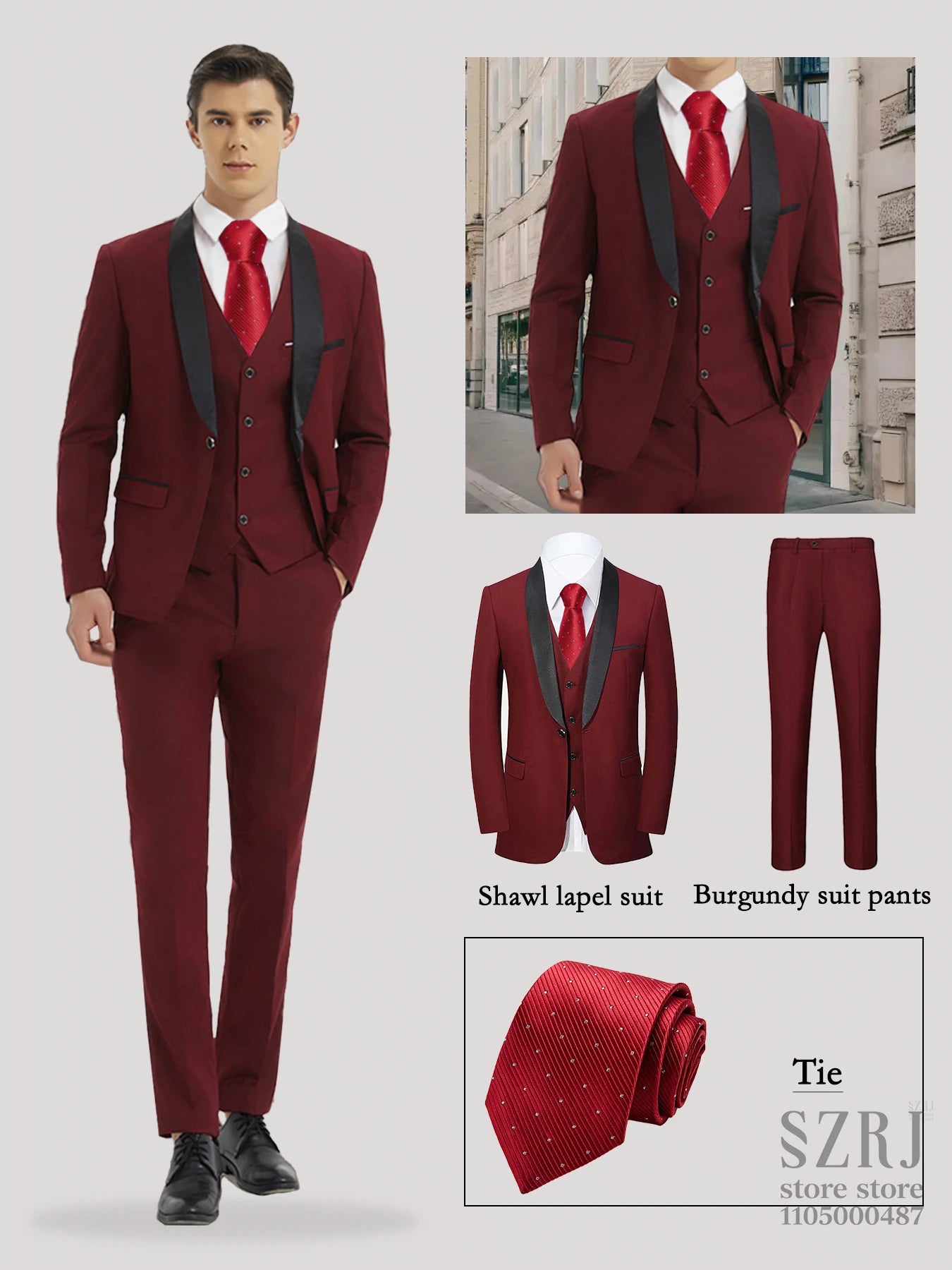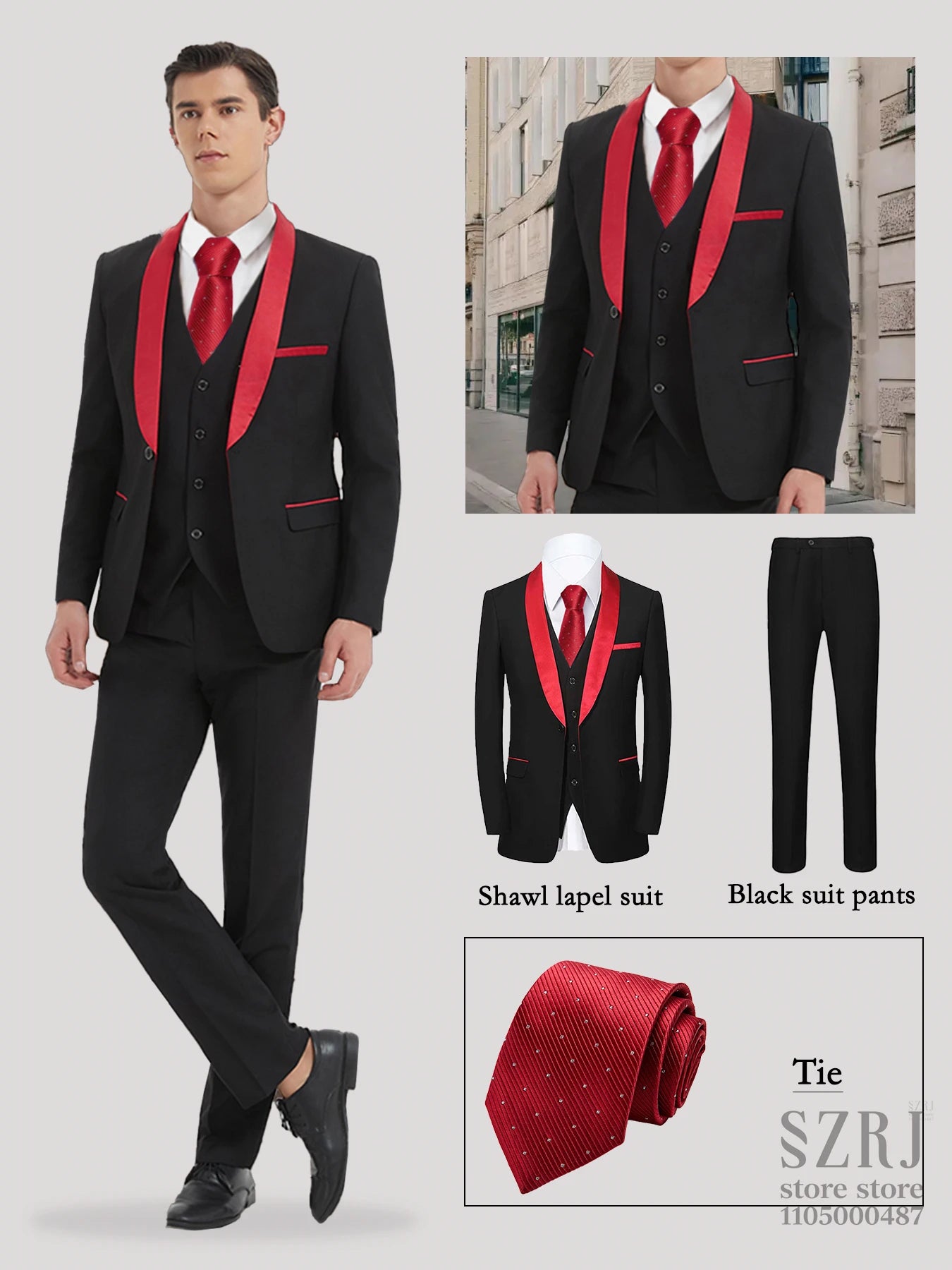 4-Piece Men'sy Suit:Jacket,Vest,Pants&Red Tie.Classic,Fashionable, Smooth Lines.For Business Elites,Events,Banquets,Weddings.
