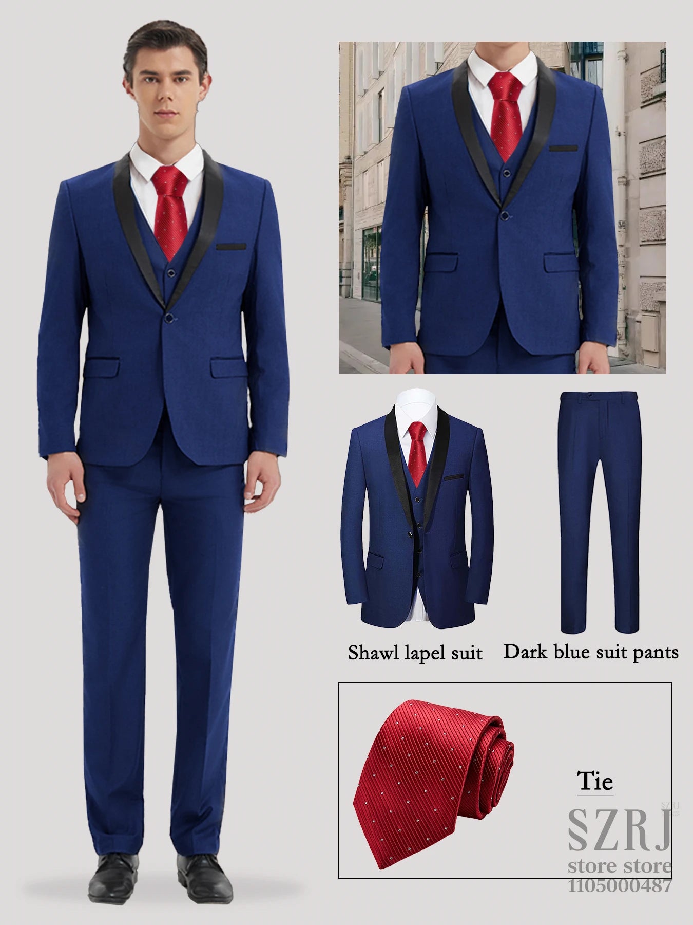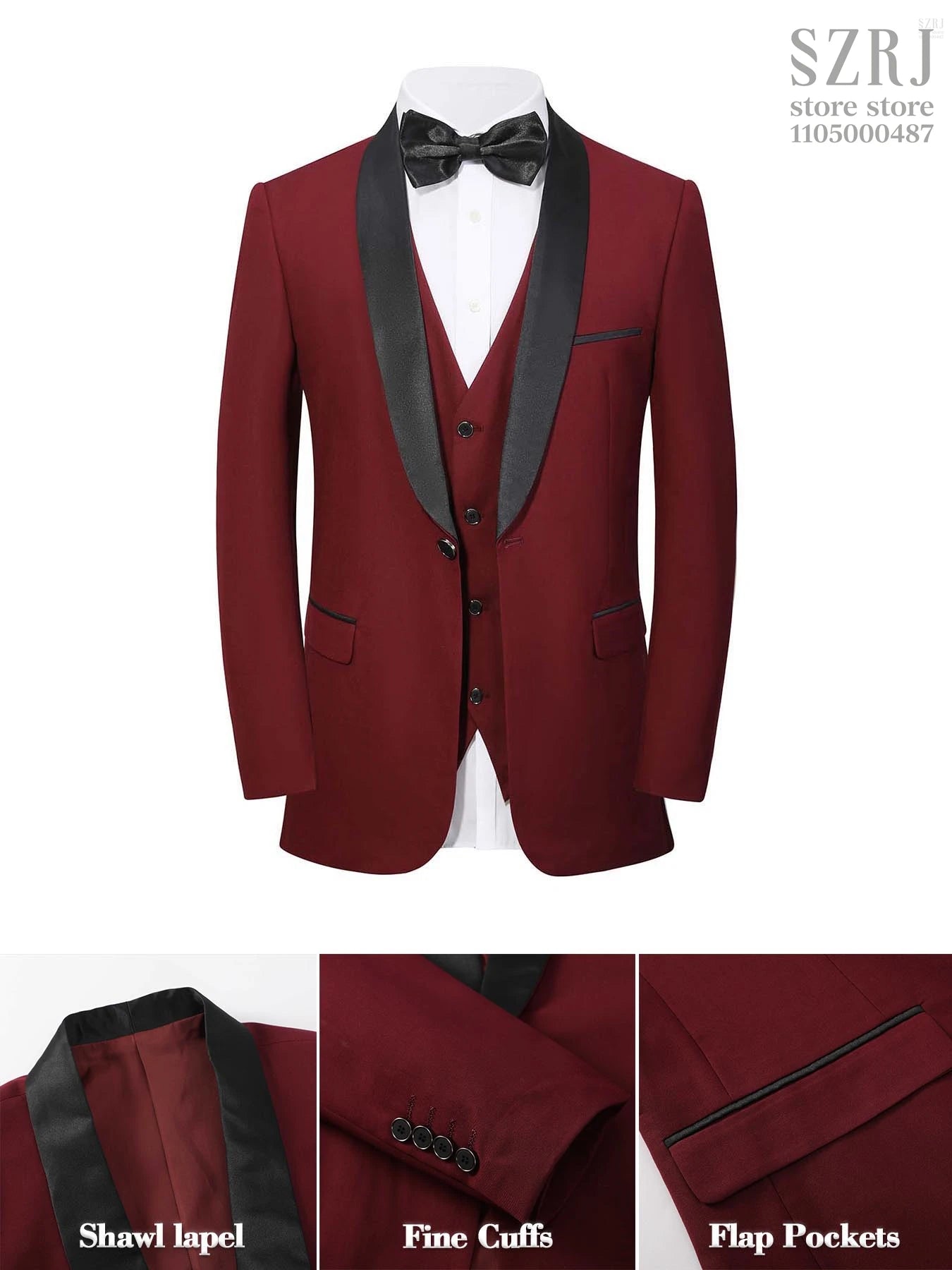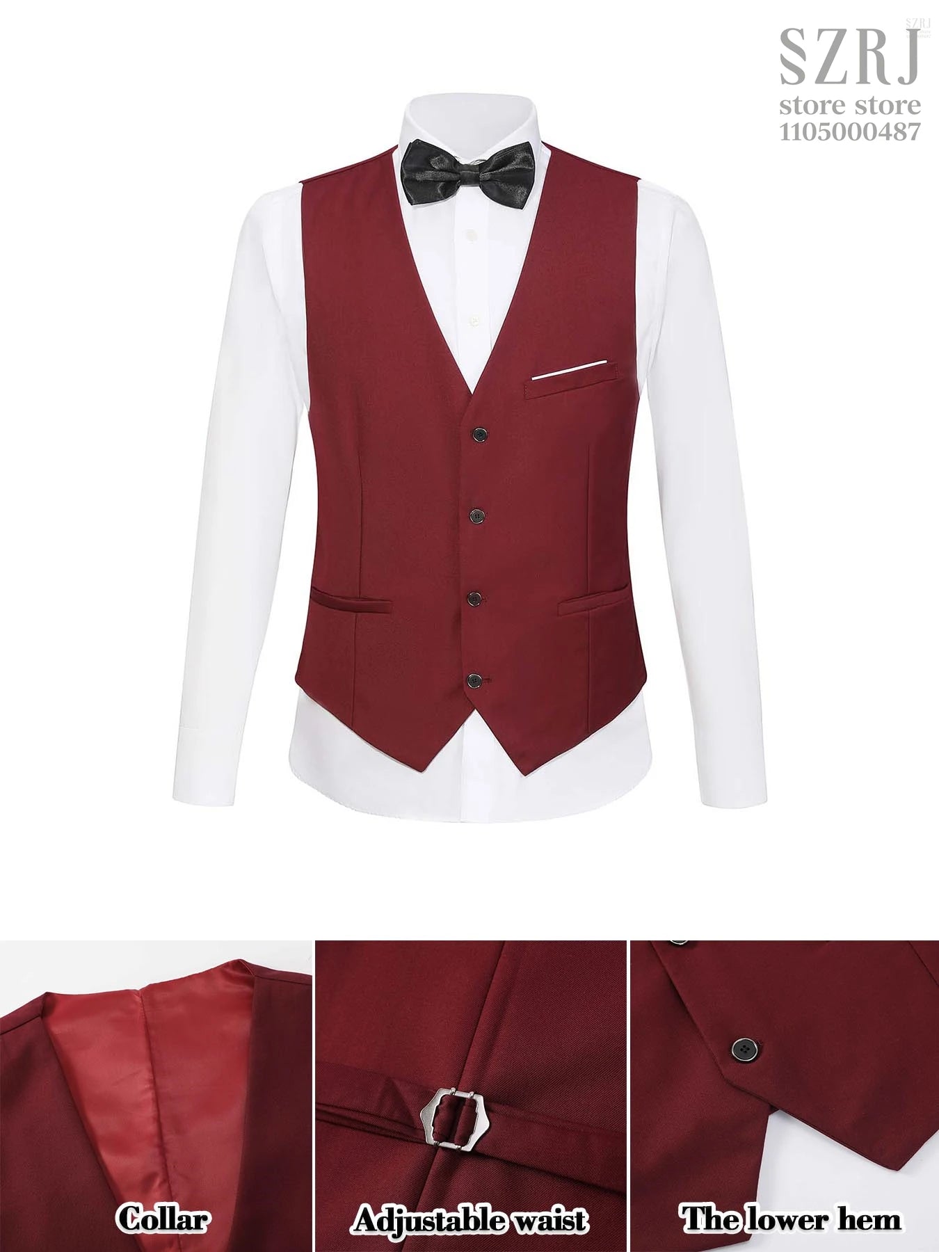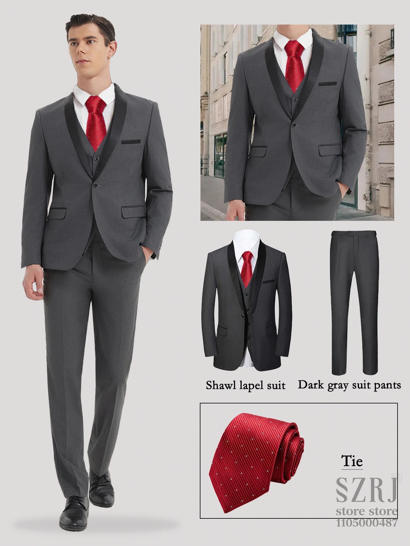 4-Piece Men'sy Suit:Jacket,Vest,Pants&Red Tie.Classic,Fashionable, Smooth Lines.For Business Elites,Events,Banquets,Weddings.