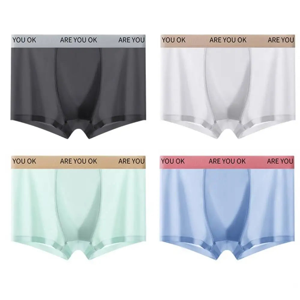 4pcs Boxer Shorts Men's Ice Silk Underwear Summer Breathable Underpants Men Sexy Thin Panties U Convex Lingerie