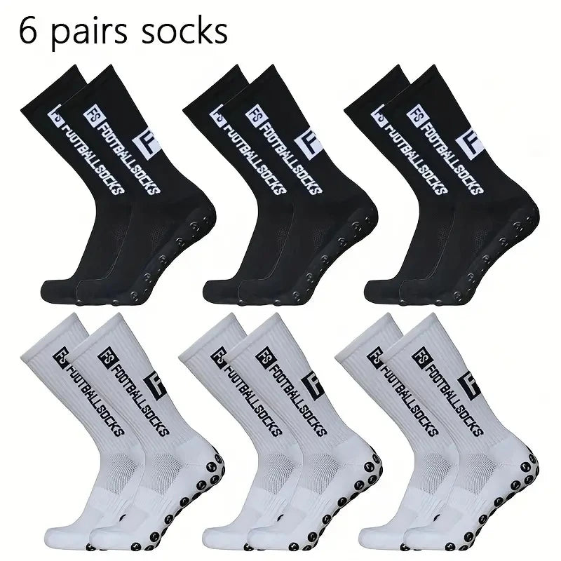 6 Pairs Breathable Football Socks Men Women Sports Socks Non-slip Silicone Bottom Soccer Baseball Socks Outdoor Sport Yoga Socks