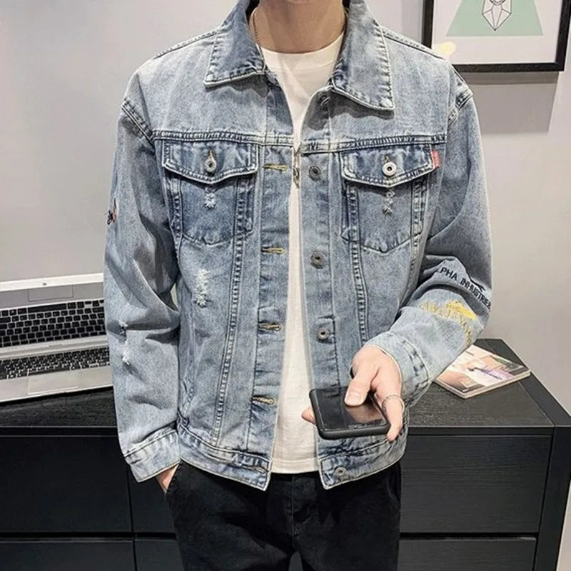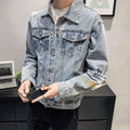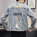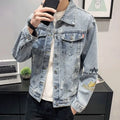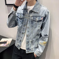 Autumn Ripped Cowboy Coat for Men Light with Embroidery Denim Jackets Man Hole Korean Popular Clothes Original Outwear Elatic