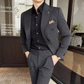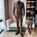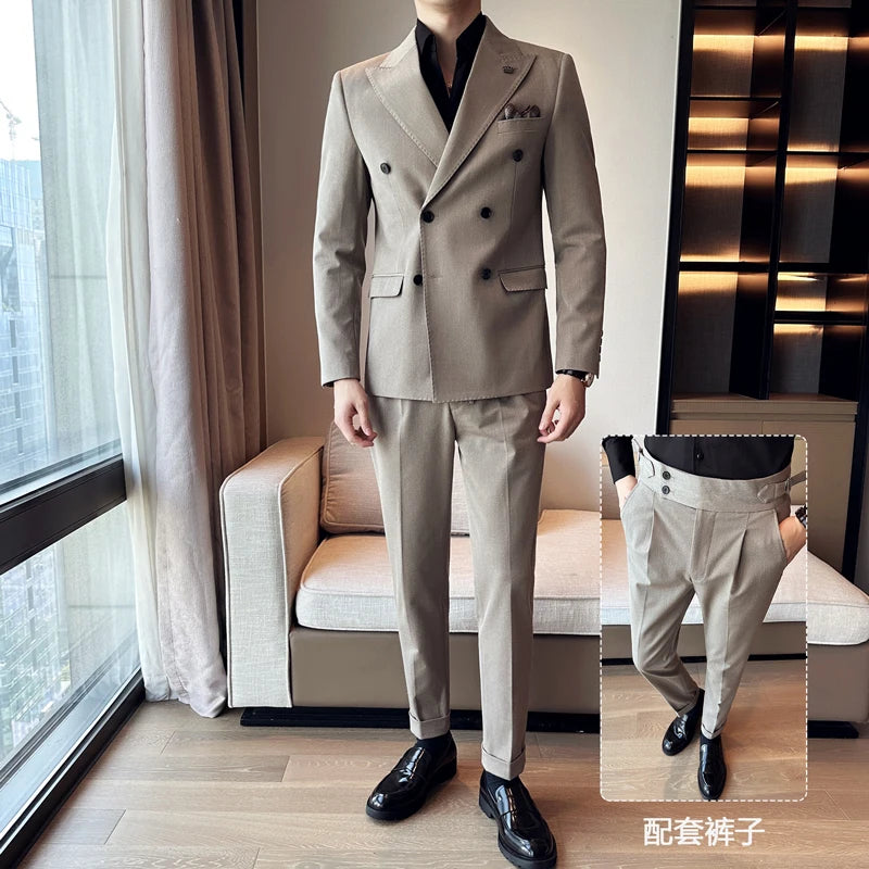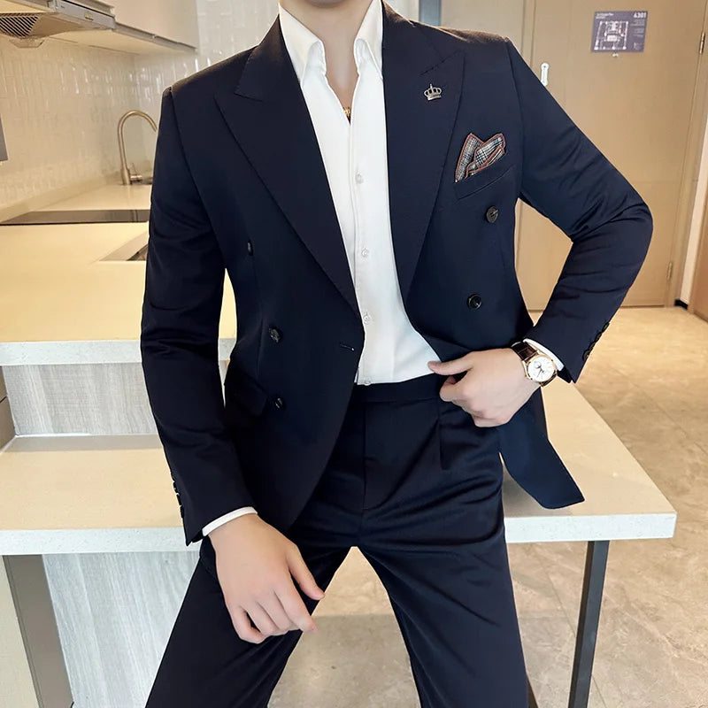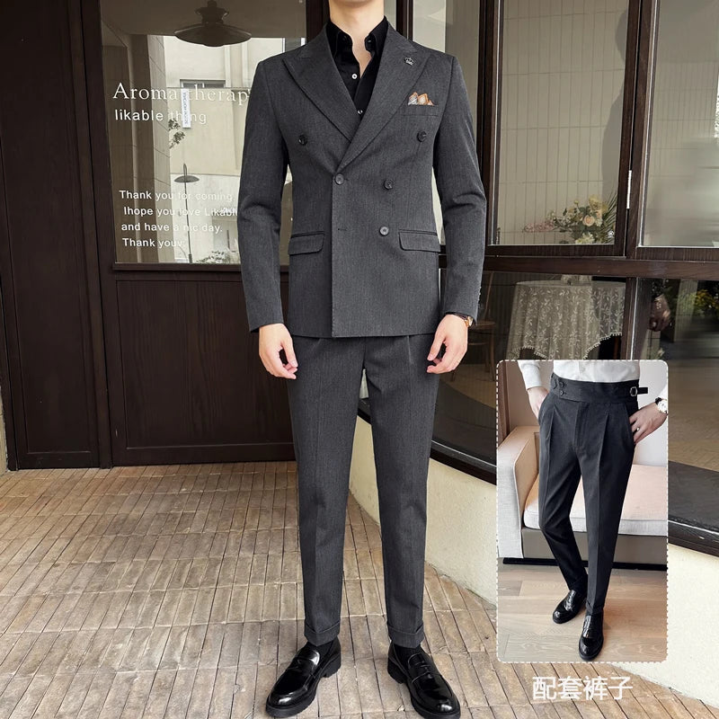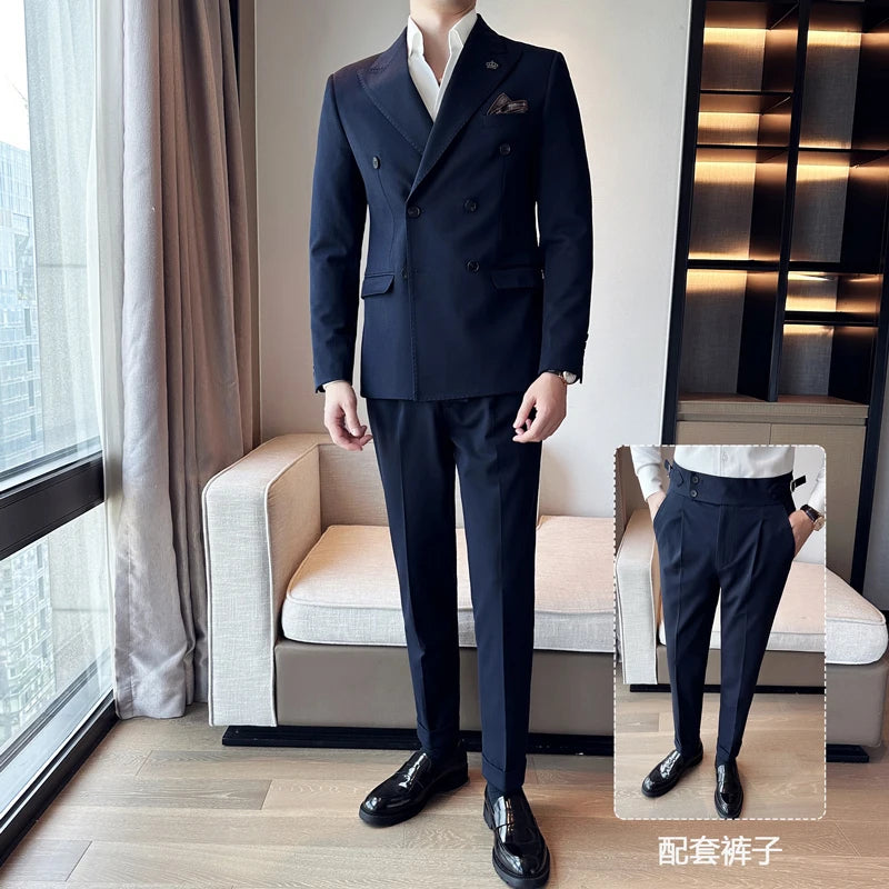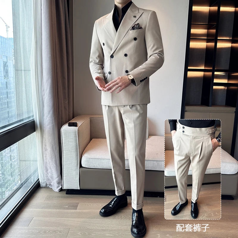 (Blazer + Trousers) Fashion Double Breasted Design Slim Men's Suit Italian Style Luxury Wedding Social Party Tuxedo 2 Piece Set