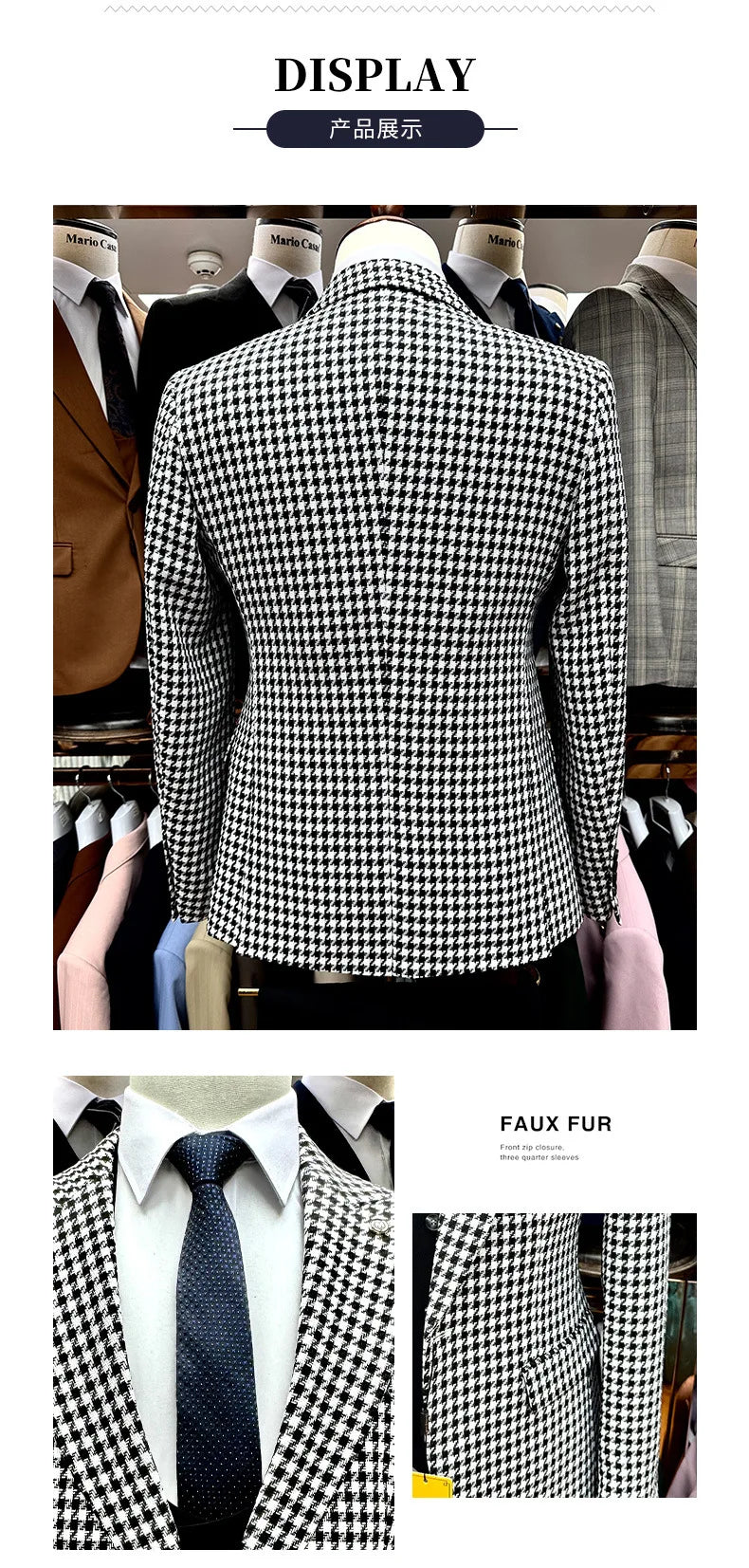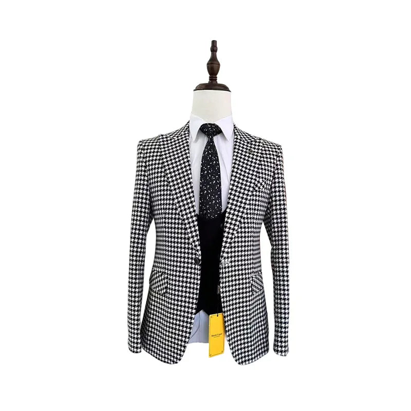 (Blazers + Pants + Vest) New Men Business Social Slim Fit Checkered Suit Male Wedding Ball Party Striped Tuxedo Dress 3Piece Set
