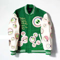 Bomber Jacket Men Hip Hop Jellyfish Eyes Flocking Embroidery Loose Casual Baseball Coat Unisex High Street Retro Outwear Spring