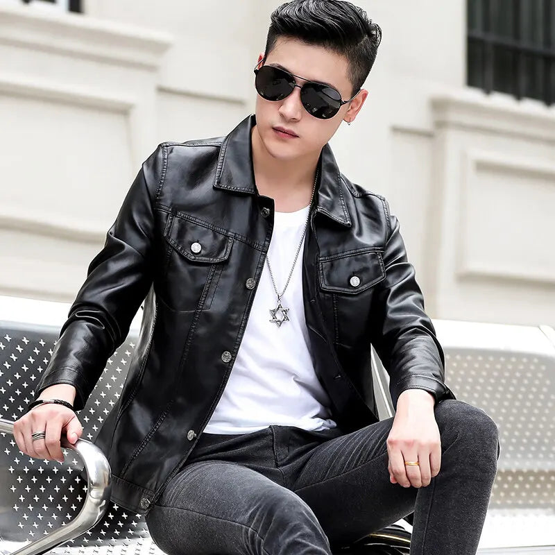 brand New leather jacket for men's leather jacket casual jacket Korean trend slim fit handsome youth Leather Coat mens plus size