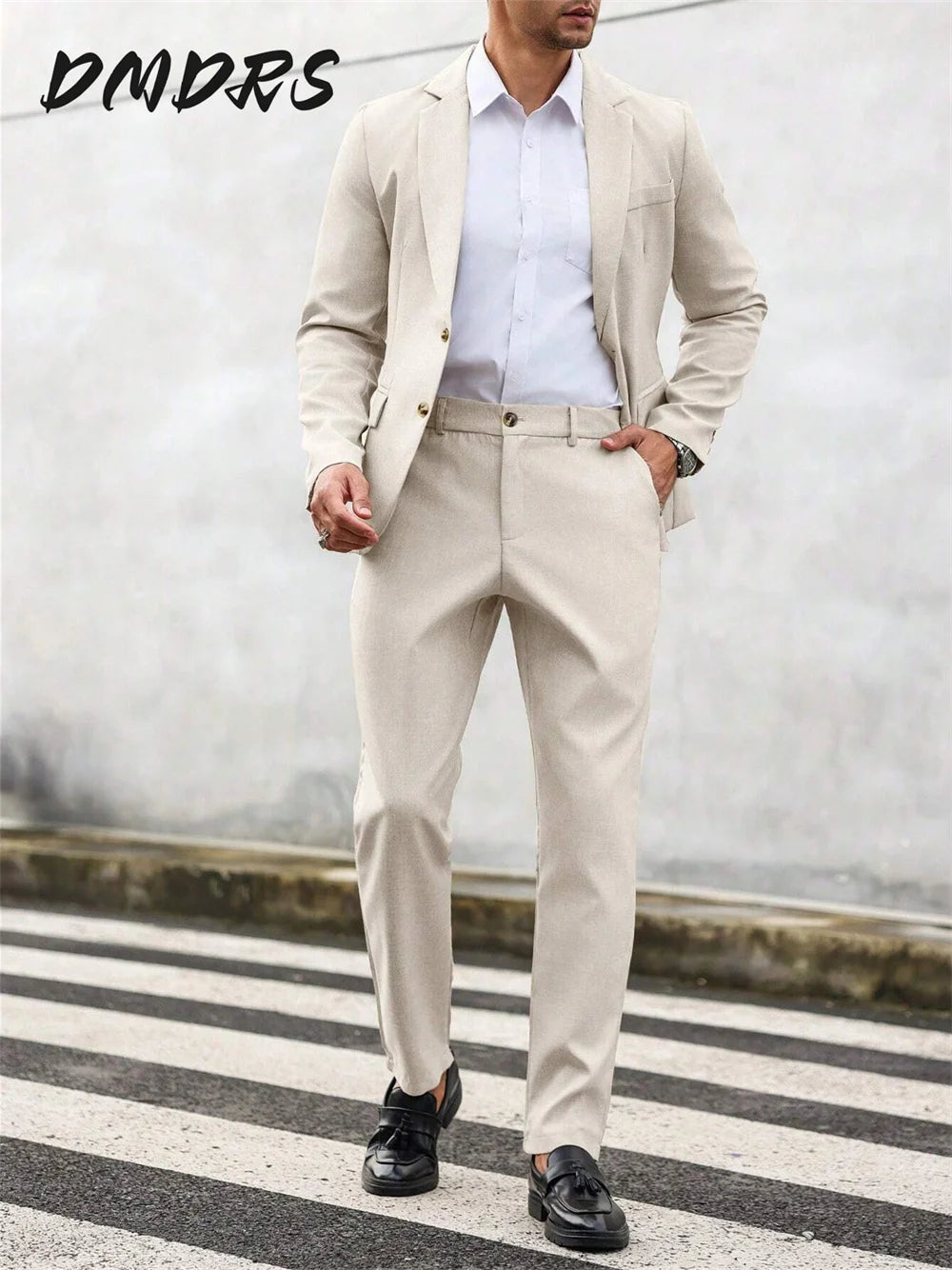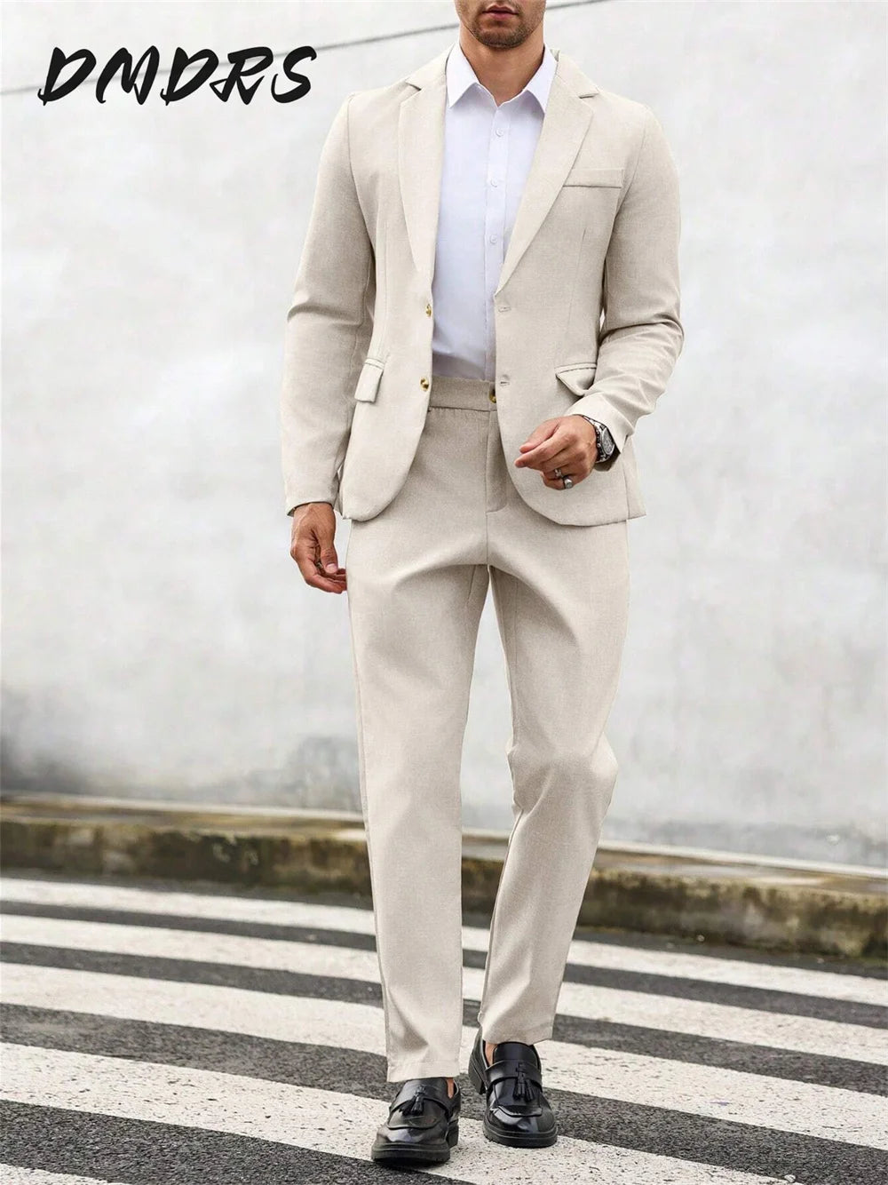 Casual Men's Suit Jacket Pants 2 Piece Formal Business Men Solid Color Suit For Groom Wedding Shawl Lapel Custom Suit Formal