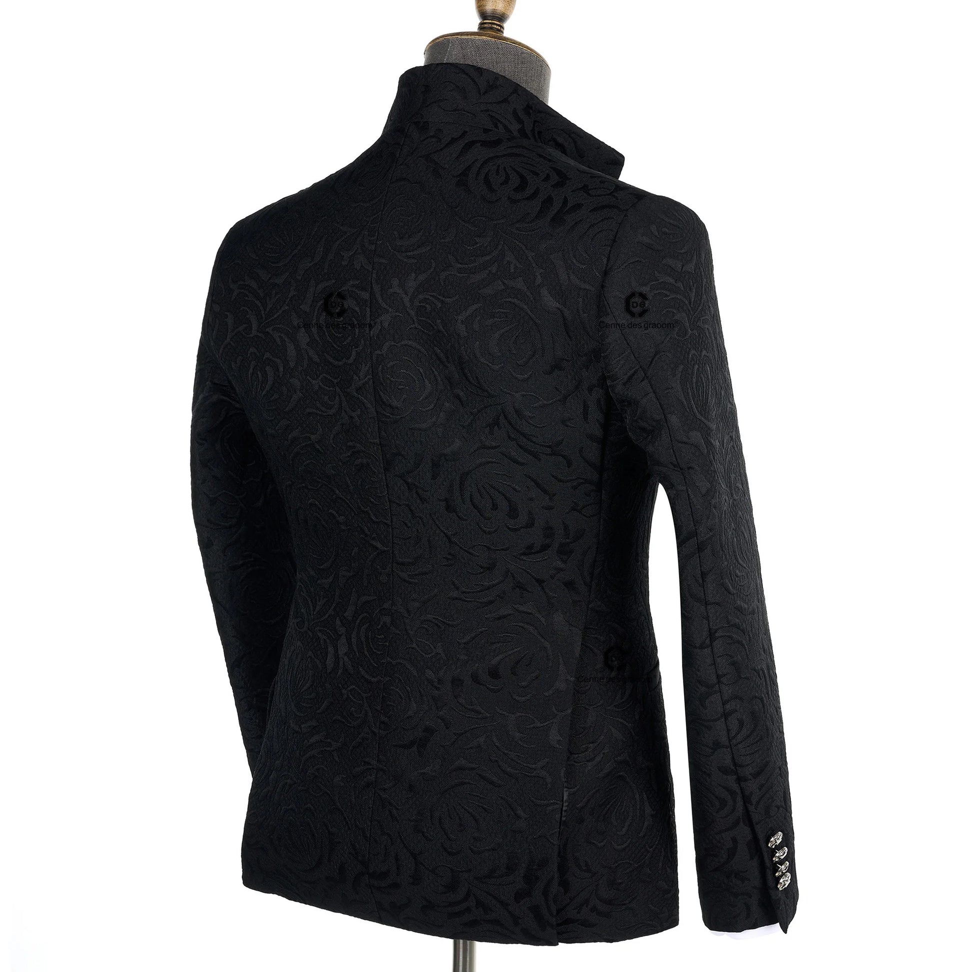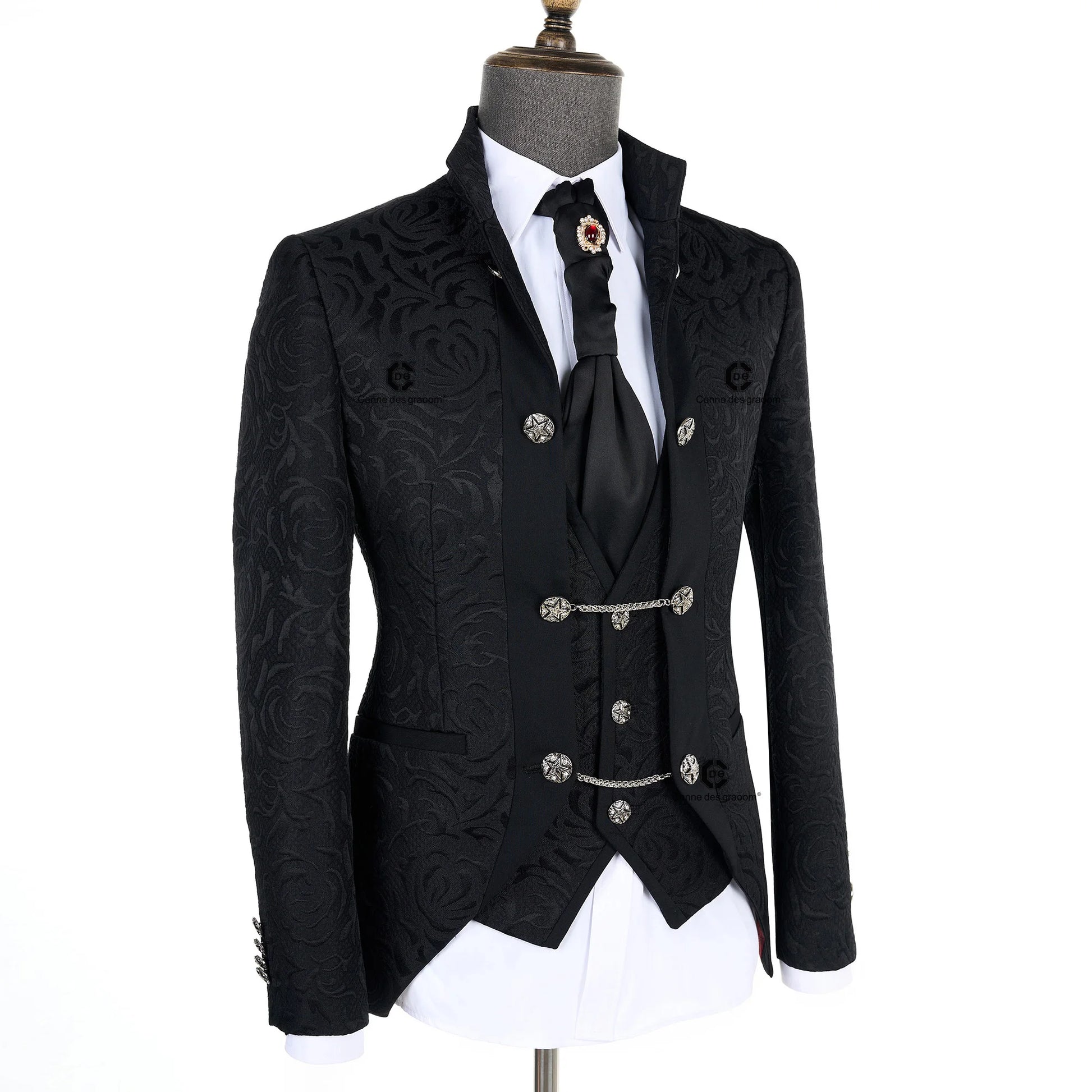 Cenne Des Graoom 2024 New Men Suits For Wedding Black Floral Paisley Jacket Waist Coat Pants and Neck Tie 4 Pcs Set Groom Party