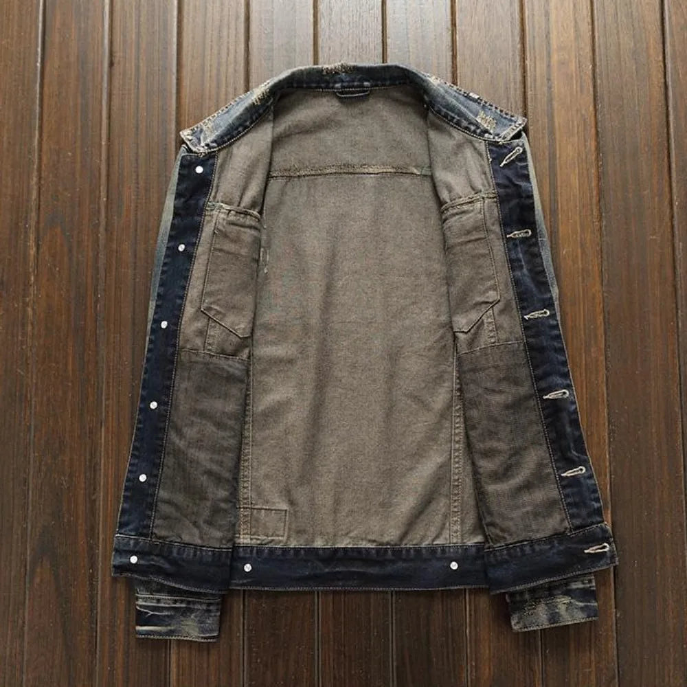 Denim Jackets Man Autumn with Hole Casual Slim Ripped Motorcycle Biker Cowboy Coat for Men Low Cost Cowgirl Worn Original Elatic