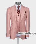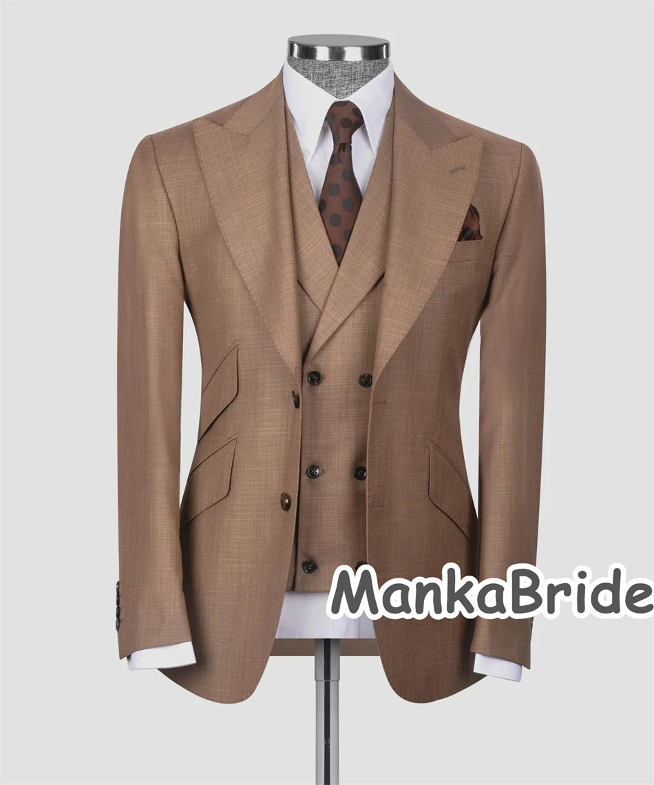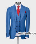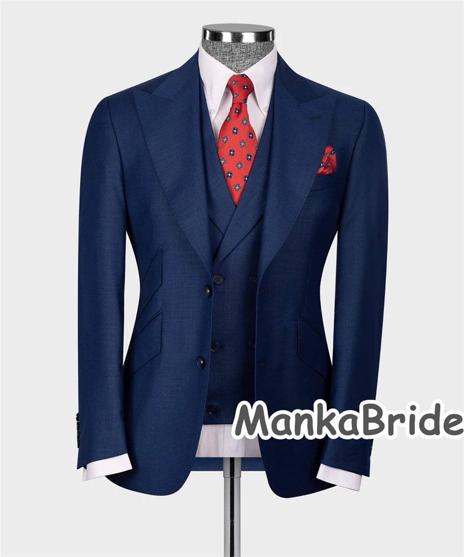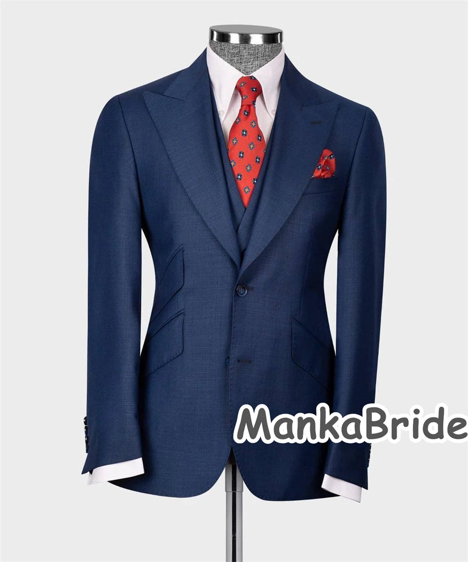 Elegant Navy Blue Classic Wedding Tuxedo 3PCS Blazer Vest Pants Full Men's Suits Slim Fit Business Wear Formal Party Suit