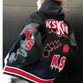 European and American Fashion Letter Embroidered Jackets Unisex Couple Contrasting Color Y2K Hip Hop Loose Leather Jackets Men