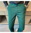 Fashion Business Casual Men's Pants Cropped Pants Waffle Pattern New Trend Spring Summer Casual Trousers Dark Green White 28-38
