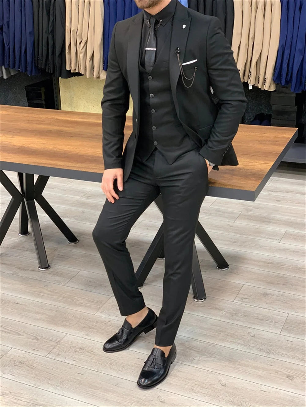 Handsome Single Breasted Men's Suit set For Formal Office Meeting Clothing Classic Solid Suit Elegant Groom For Wedding Suit