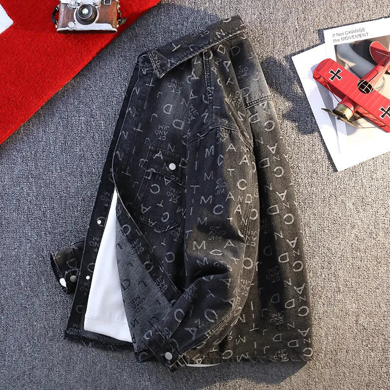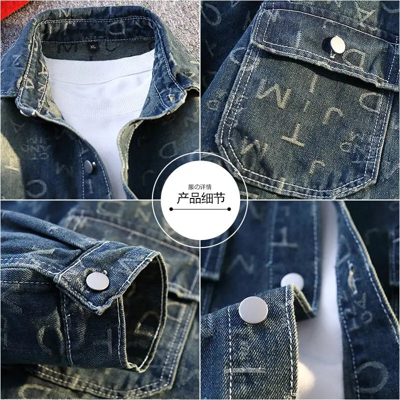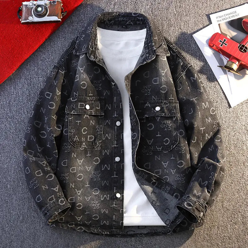 High Quality 2025 Spring Autumn Men's Cotton Denim Jackets Casual Jeans Youth Streetwear print Denim Coats Loose Tops Clothing