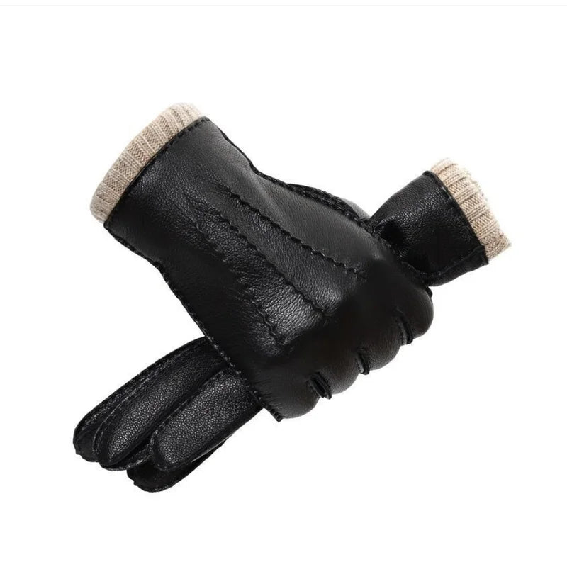 High Quality Men Genuine Sheepskin Leather Gloves Winter Warm wool Lined Touch Screen Full Finger Driving Motorcycle Gloves