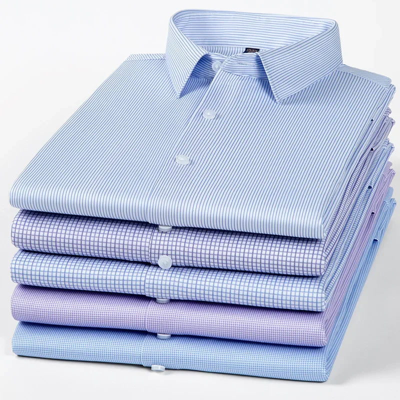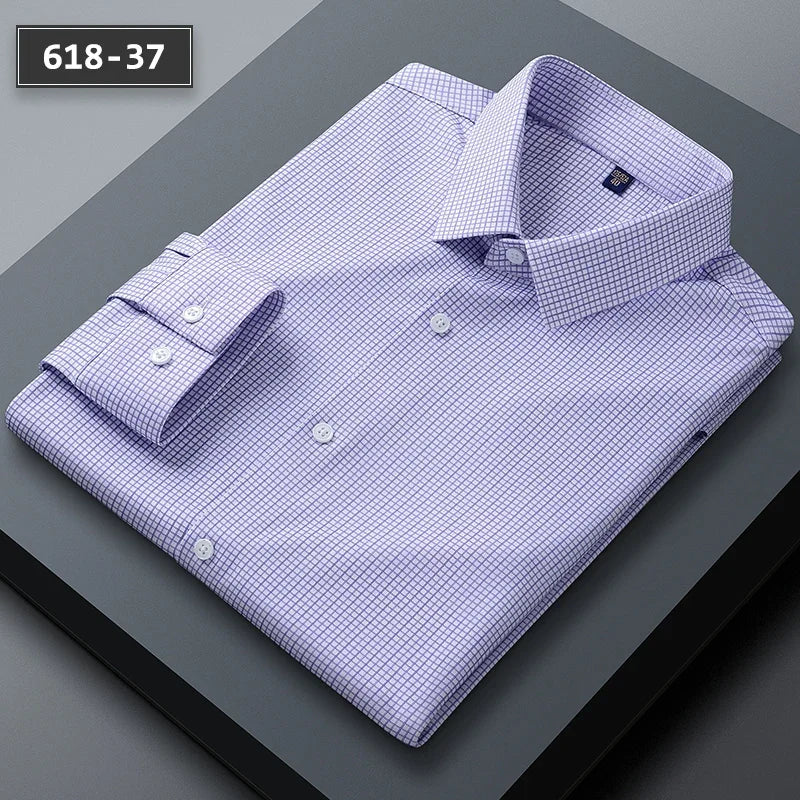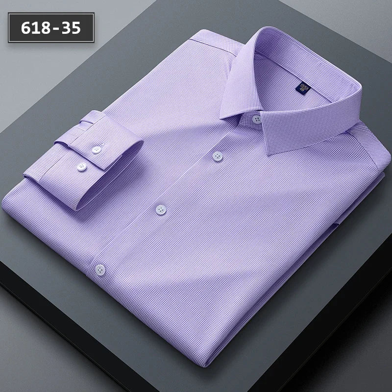 Hight quality elastic long sleeve shirts for men slim fit formal shirt plaid office clothes houndstooth easy-care business tops