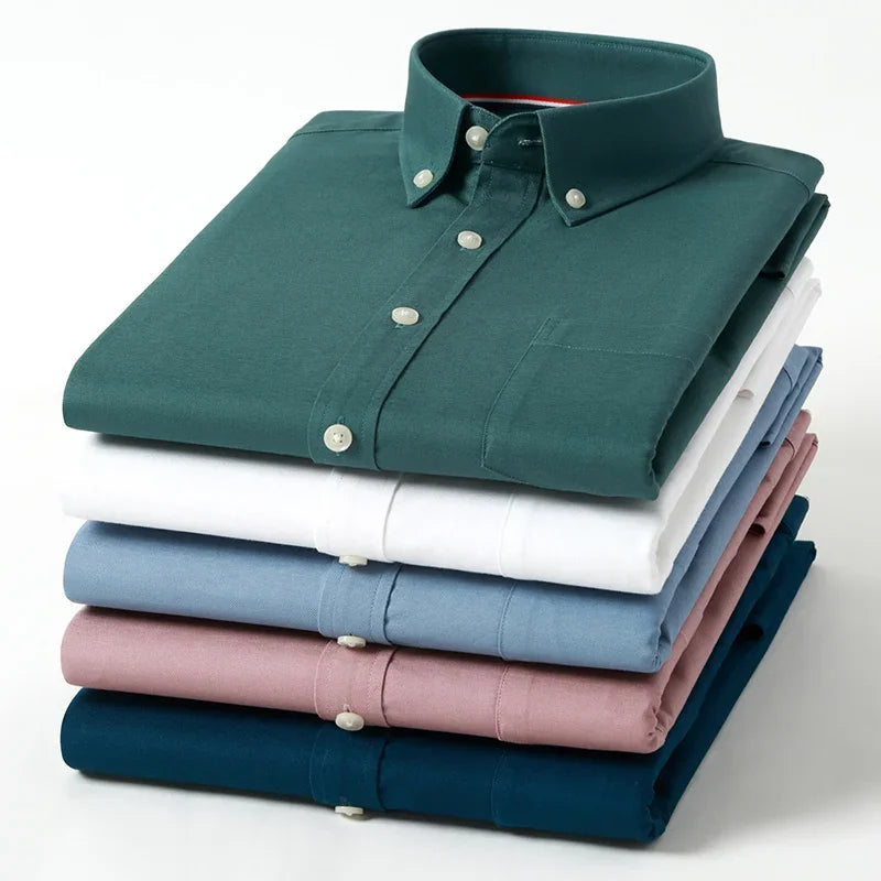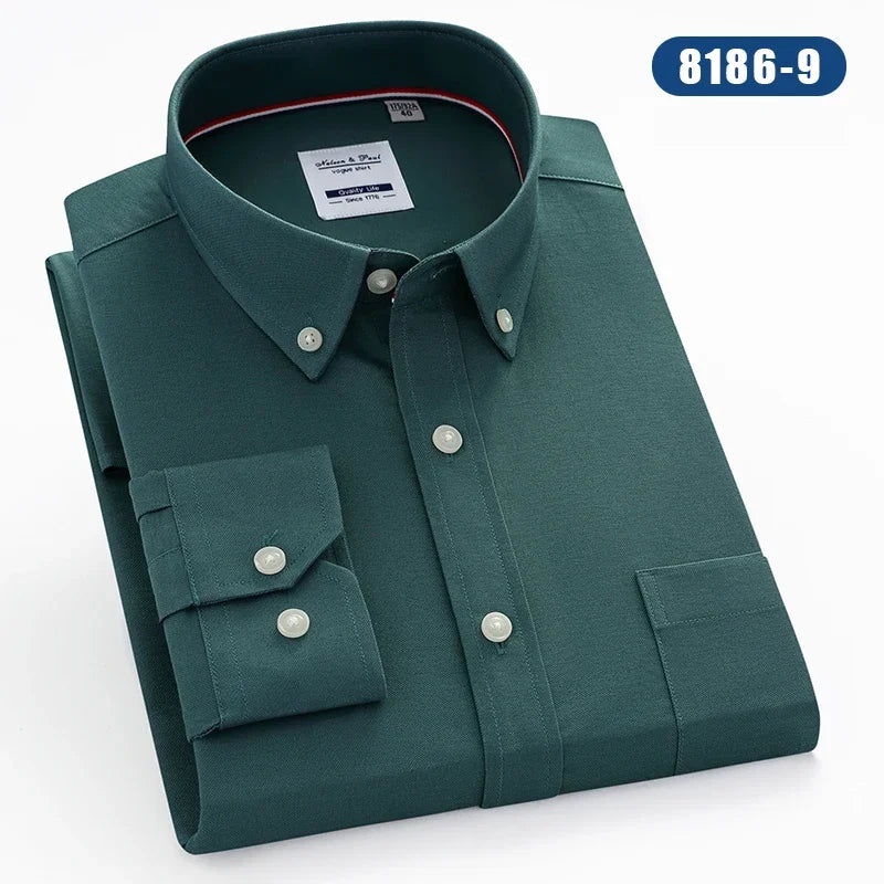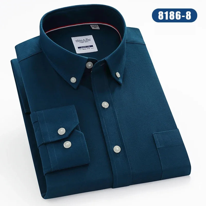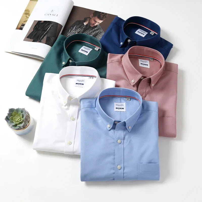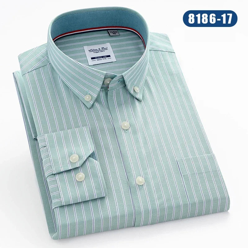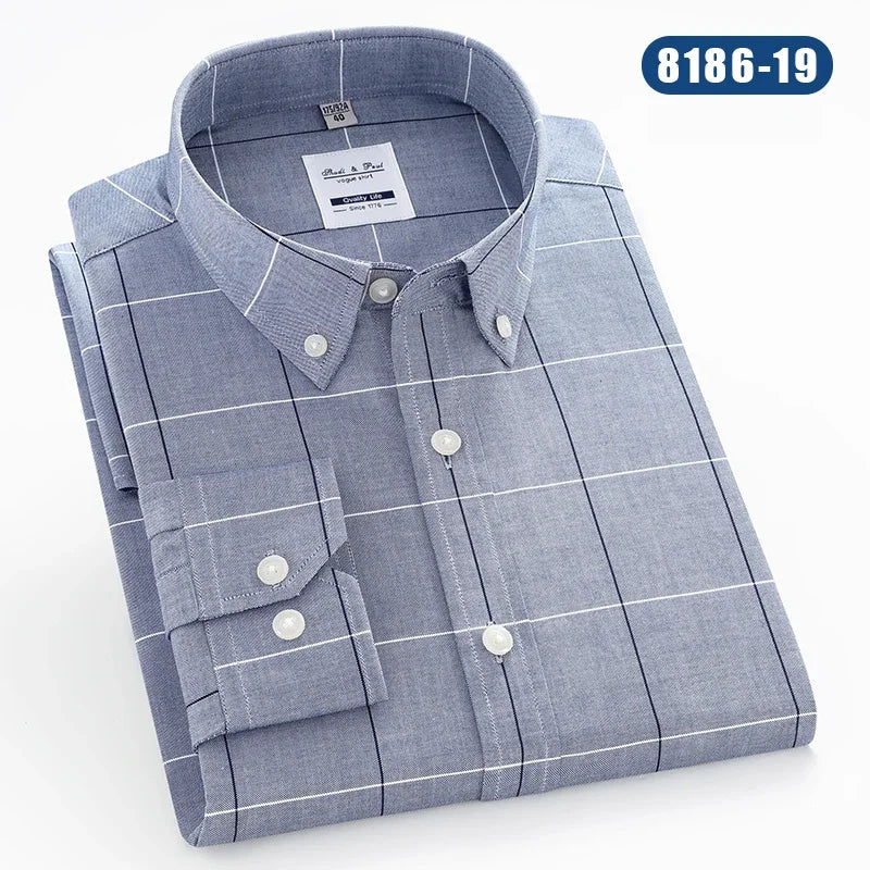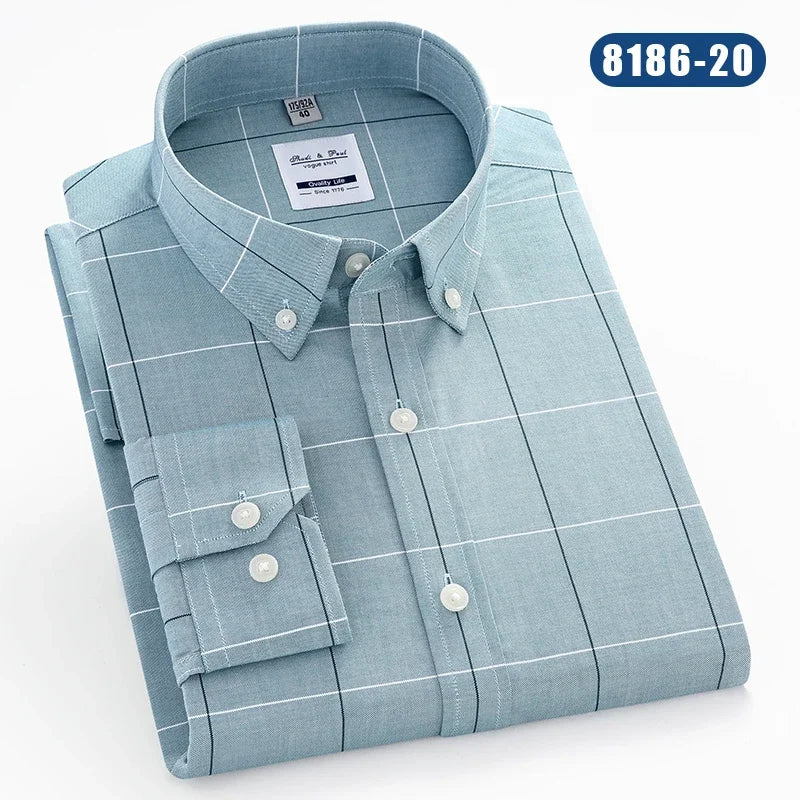 Hight qulity100%cotton oxfors long-sleeve shirts for men slim fit formal shirt white tops office plaid korean popular clothes