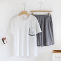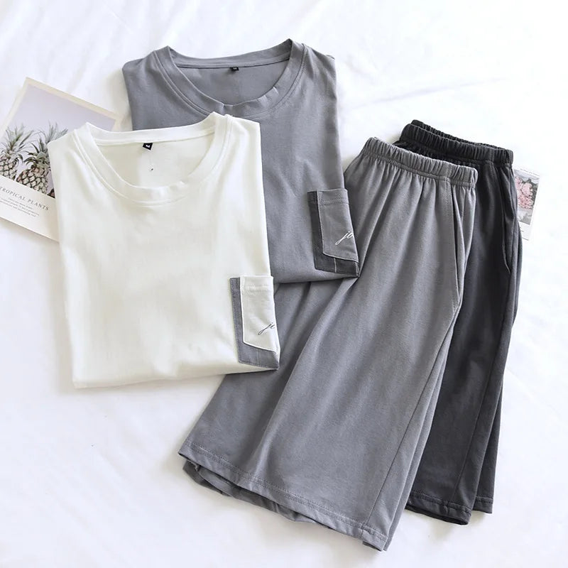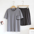 Japanese summer new men's pajamas short-sleeved shorts two-piece set 100% cotton knitted home clothes thin casual large size set