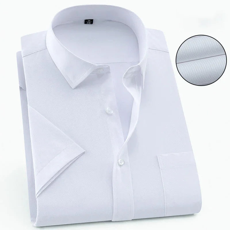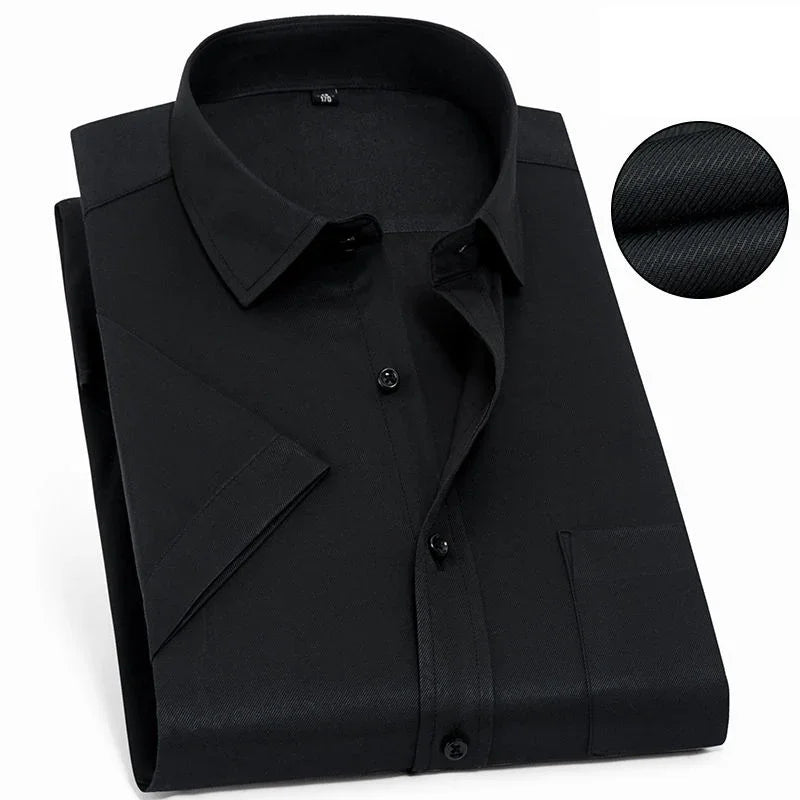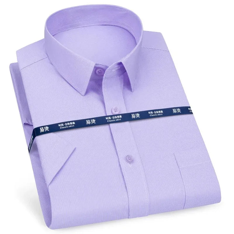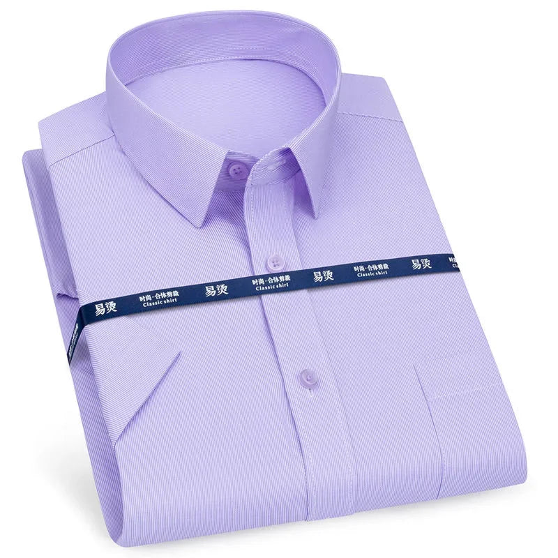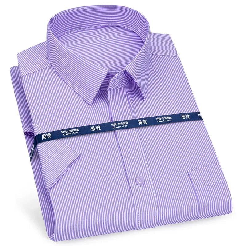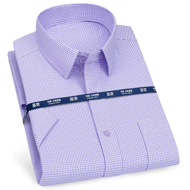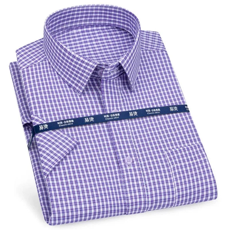 Men‘s Short Sleeve Shirt Business Casual Classic Plaid Striped Checked Male Social Dress Shirts Blue Purple 6XL Plus Large Size