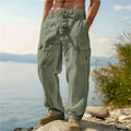 Men's Casual Trousers Loose Comfortable cargo pants Pants Man Cotton Linen multi-pocket Straight trousers Beach thin men Pants