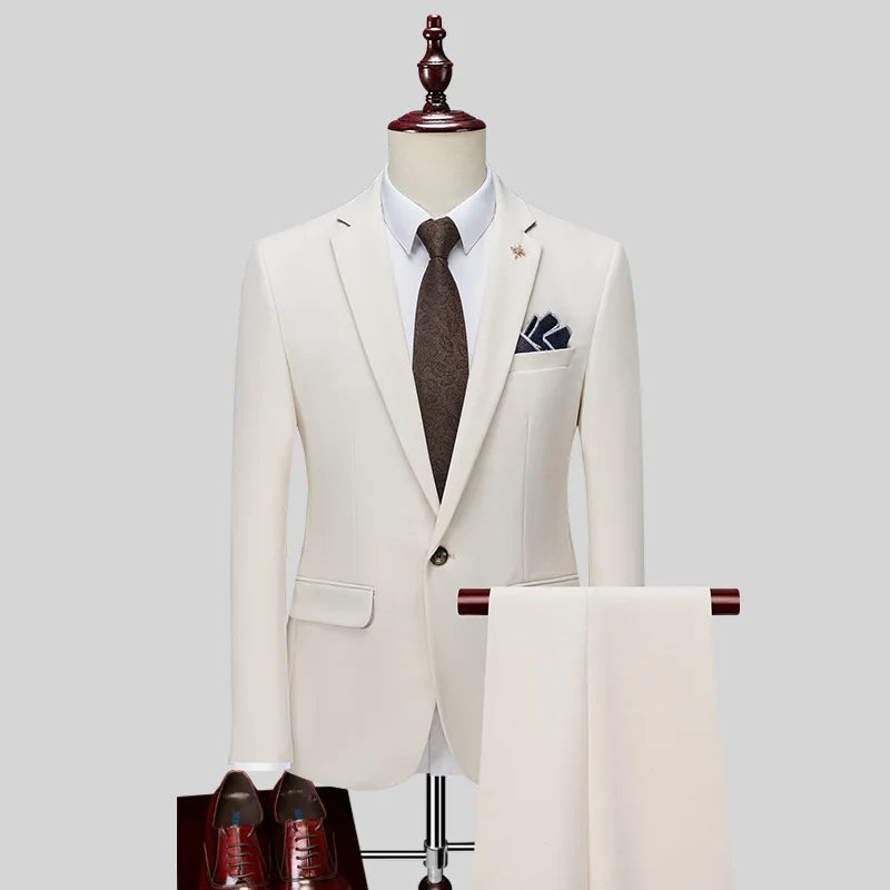 Men's Suits 2 Pieces (Jacket Vest Pants) Solid Color Mens Formal Office Business Suit Groom Wedding Dress Male Slim Blazer Sets