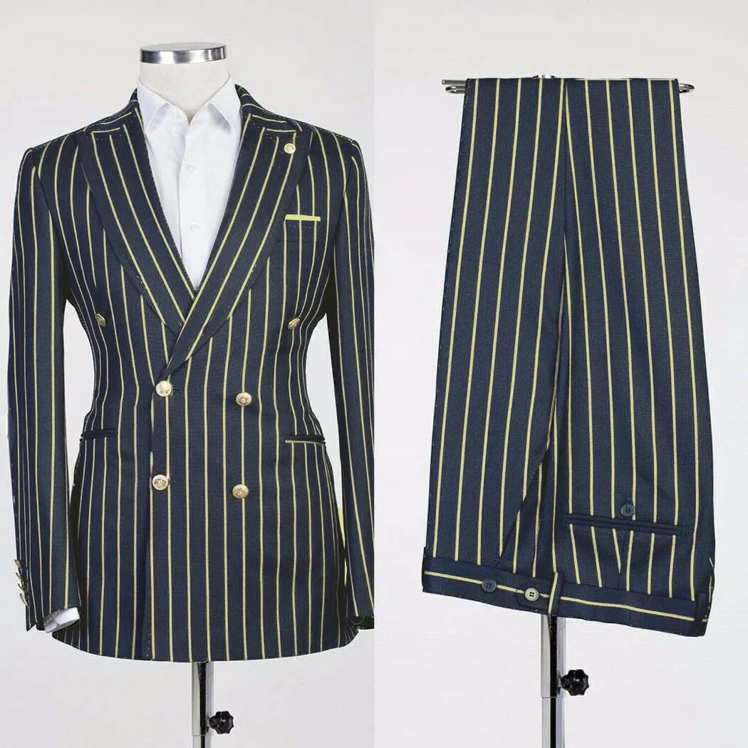 Men's Suits Stripe Business Blazer Sets 2 Pcs Male Coat with Pants Double Breasted Jacket British Style Pantsuits Customized
