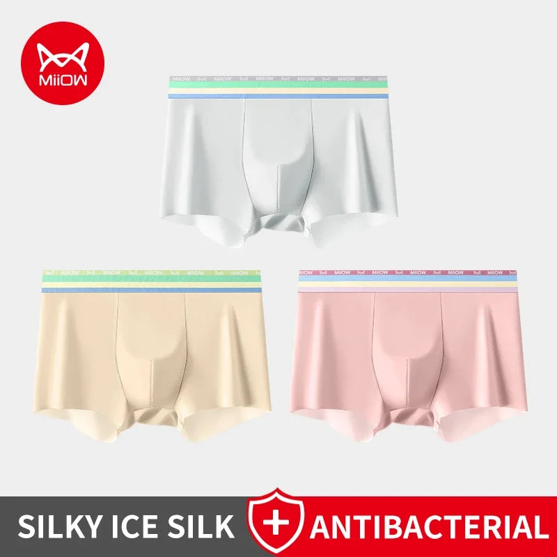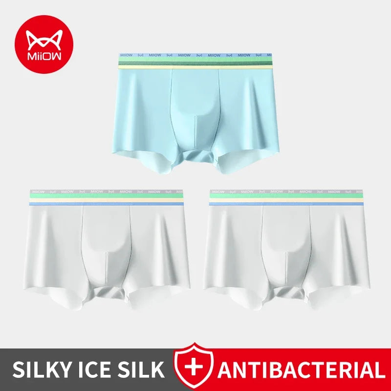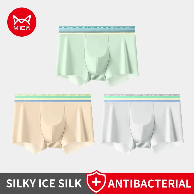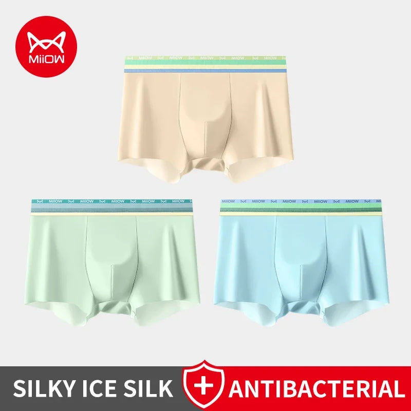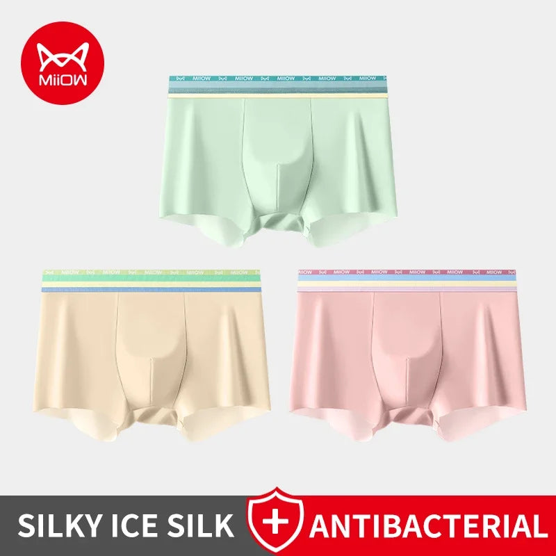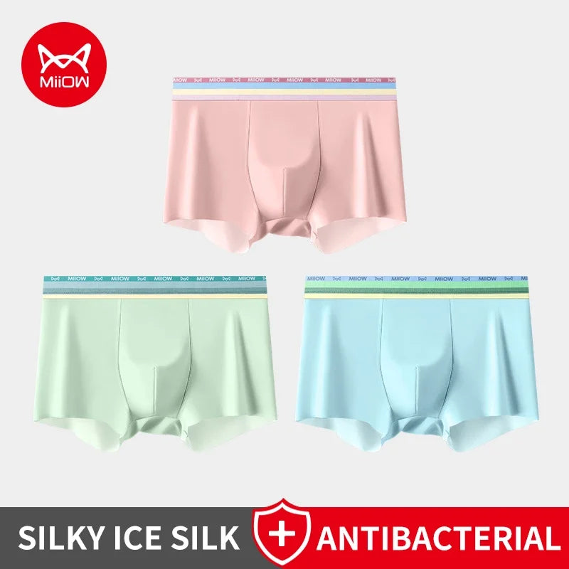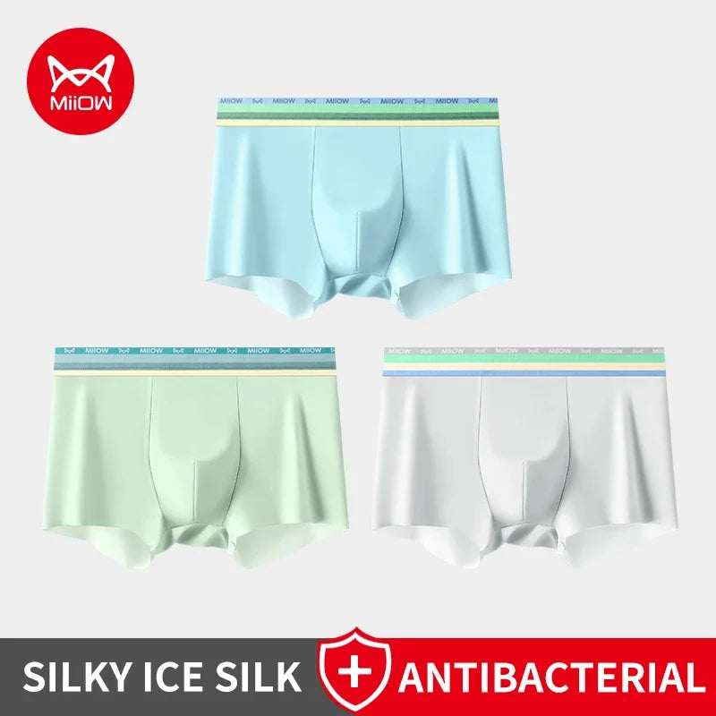 MiiOW 3Pcs Silky Ice Silk Men Underwear Boxers 7A Antibacterial Crotch Mens Underpants Lightness Breathable Men's Boxers Panties