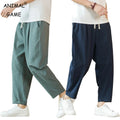 New Cotton Linen Mens Pants Casual Solid Color Breathable Streetwear Loose Straight Drawstring Baggy Lightweight Sport Pants
