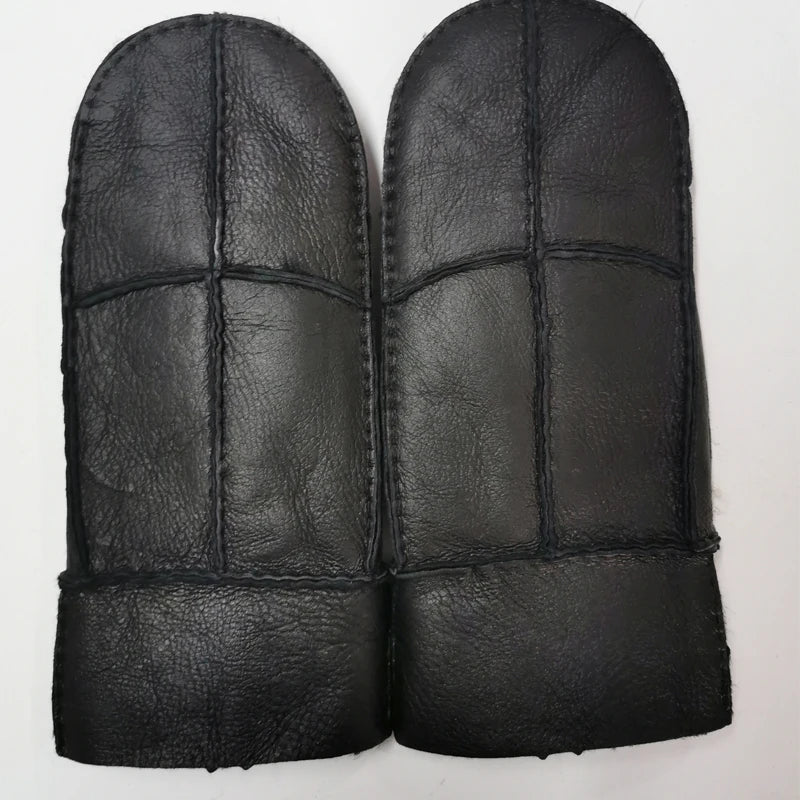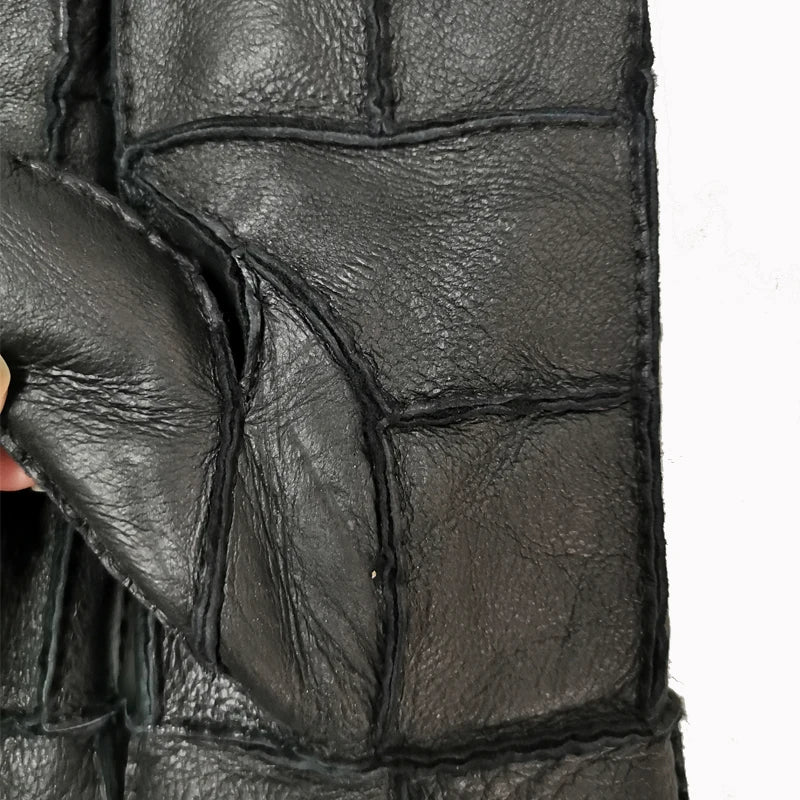 NEW Handmade Sewing Natural Sheepskin Gloves Working Gloves Winter Sheepskin Gloves Men Warm Wool Thick Gloves