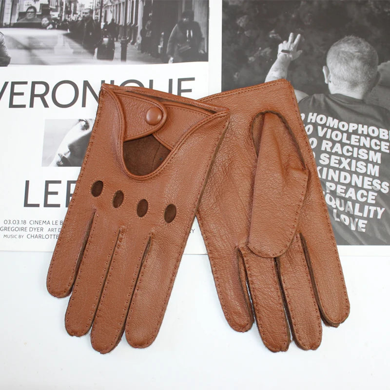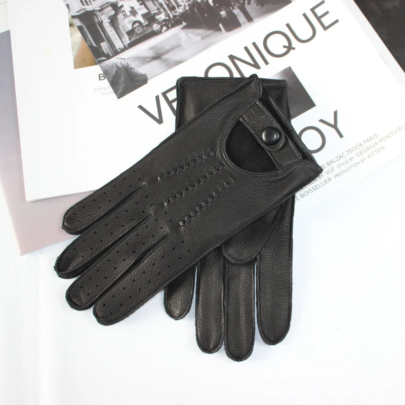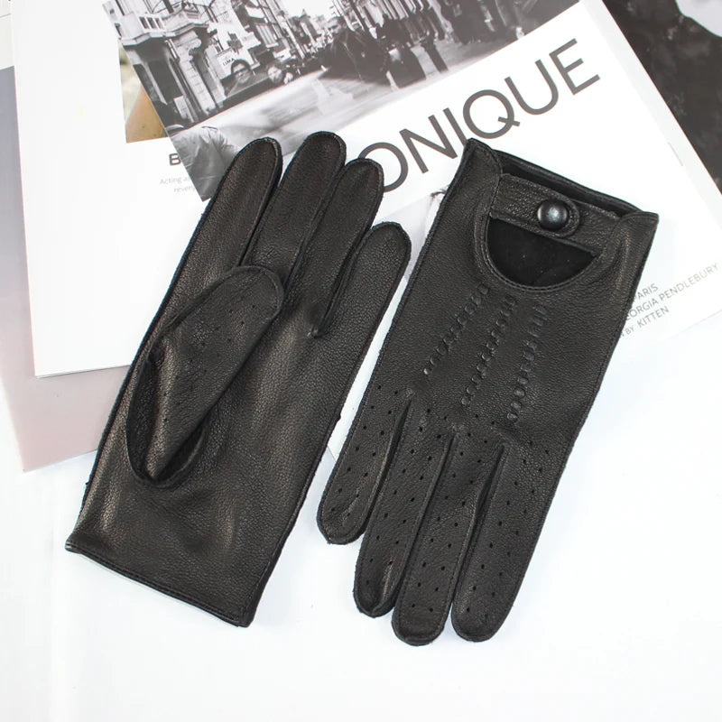 New Men's Deerskin Driving Gloves Thin Single Leather Unlined Leather Fashion Classic Black Driver Gloves