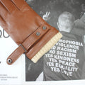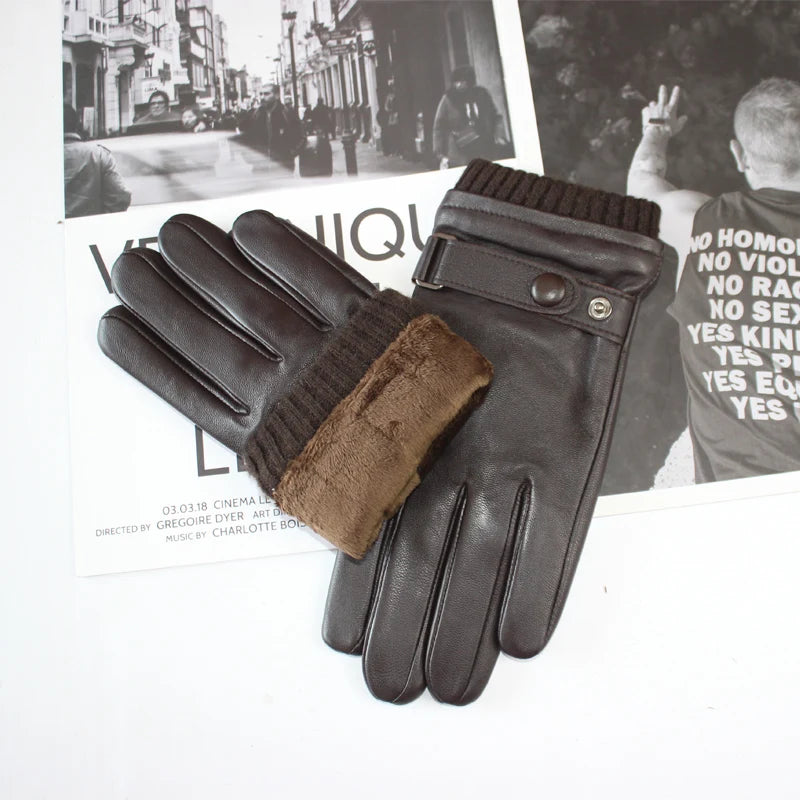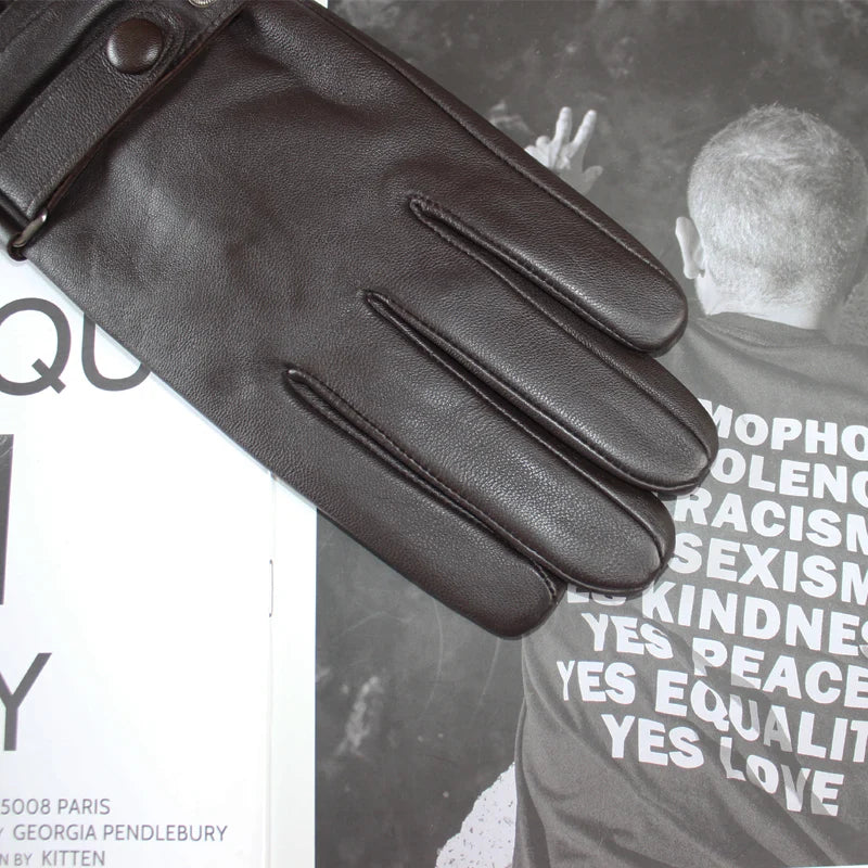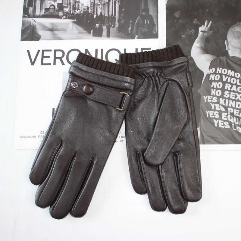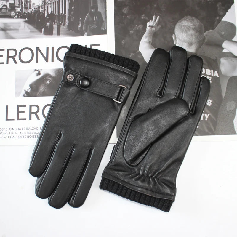 New Men's Sheepskin Gloves Autumn Button Style Touch Screen Warm Fleece Lining Driving Leather Motorcycle Gloves Winter