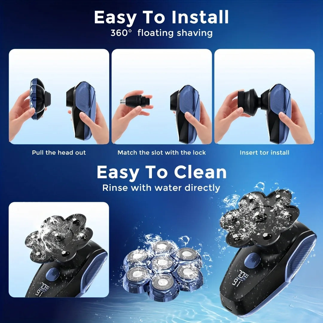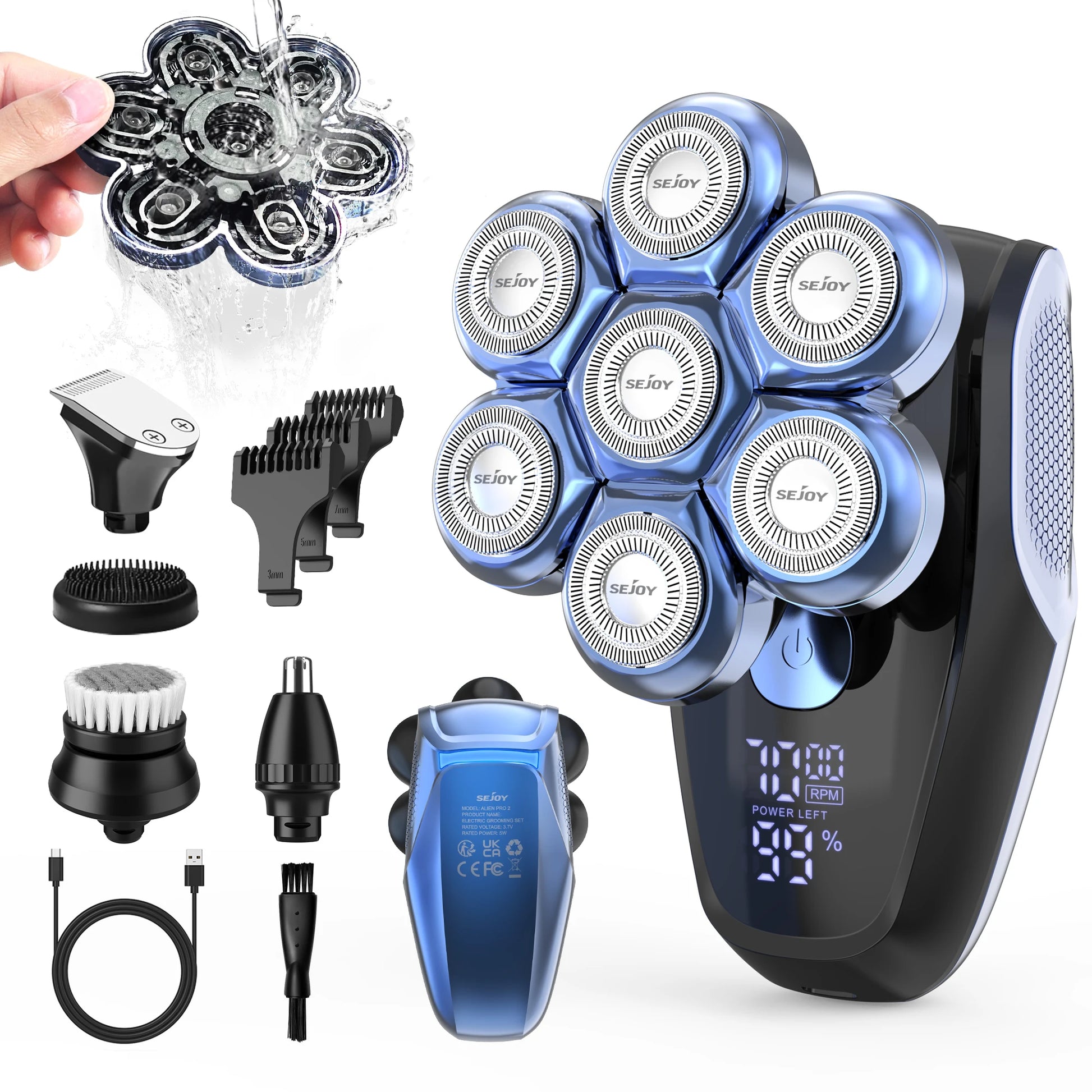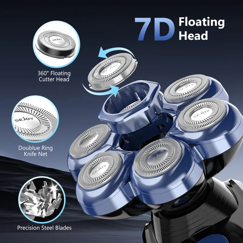 SEJOY 7D Head Shaver Bald Men Wet/Dry Electric Razor Beard Grooming Kit Hair Cutting Machine