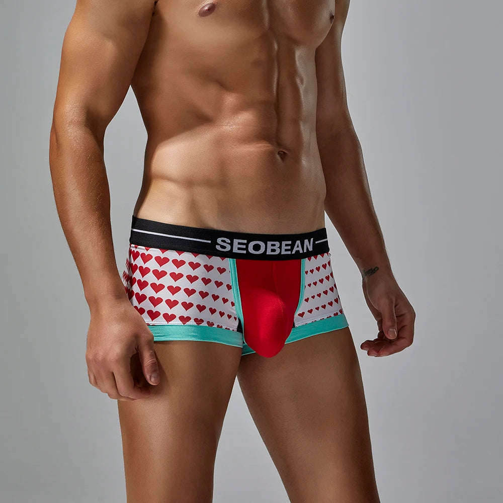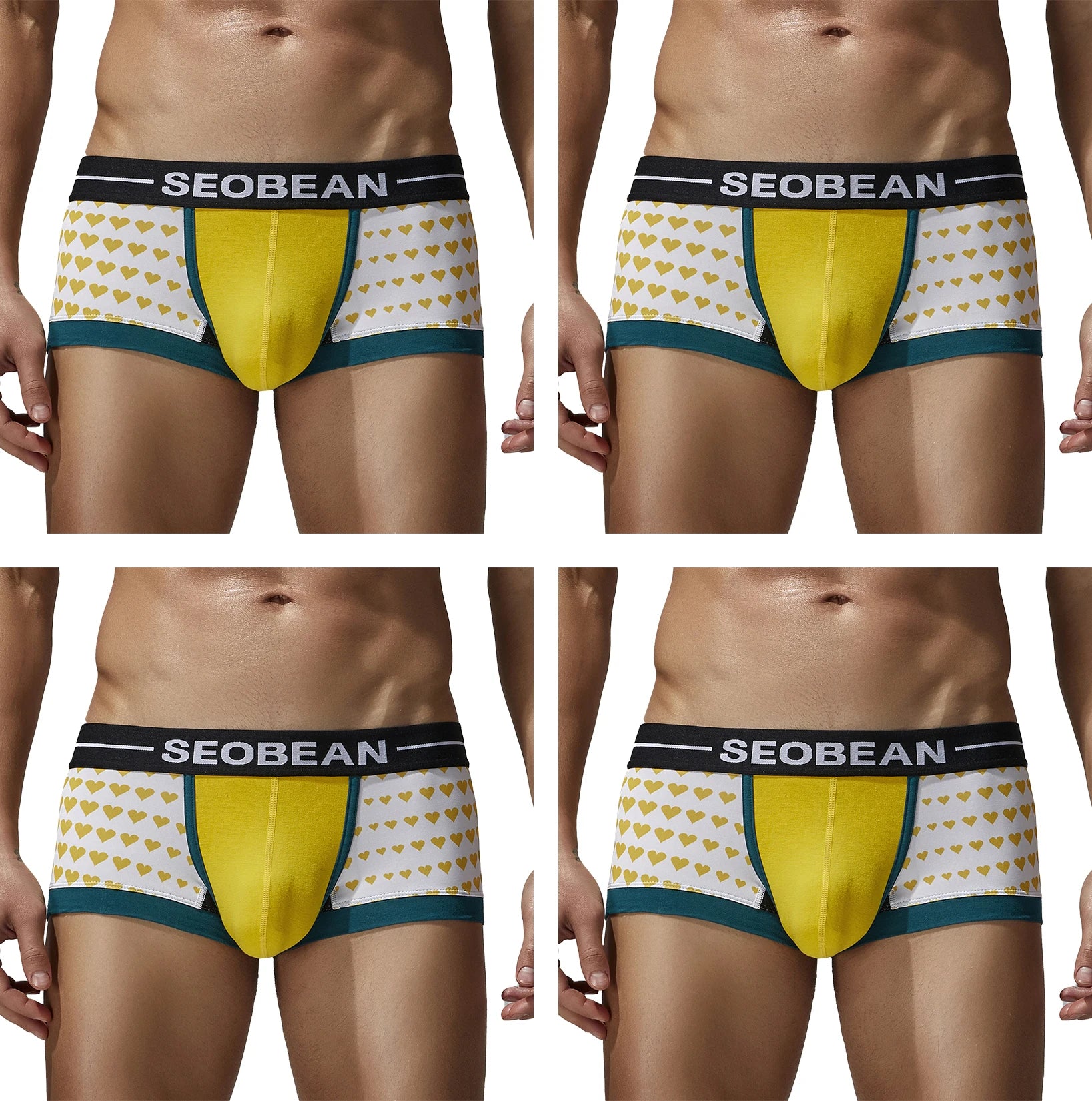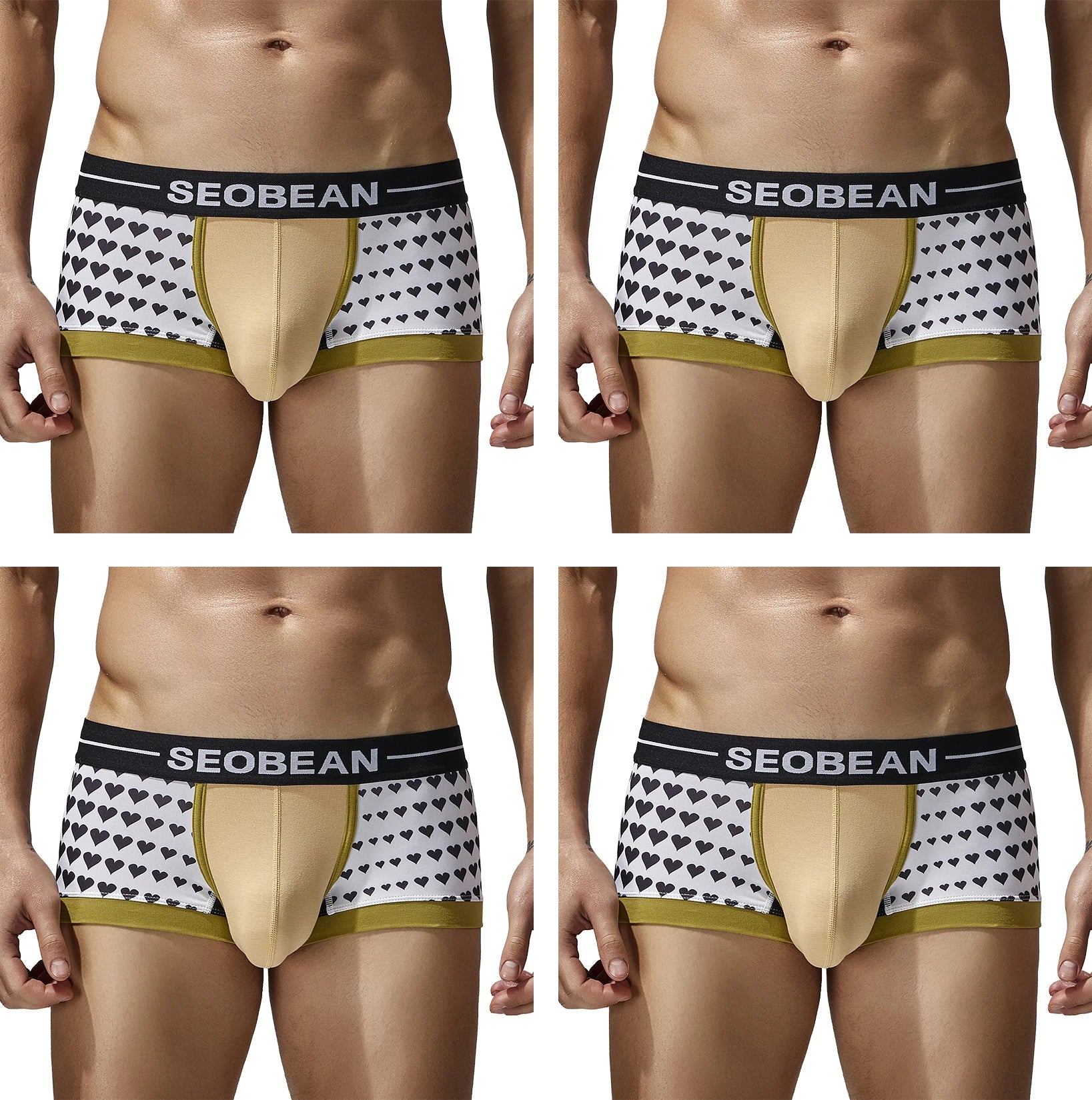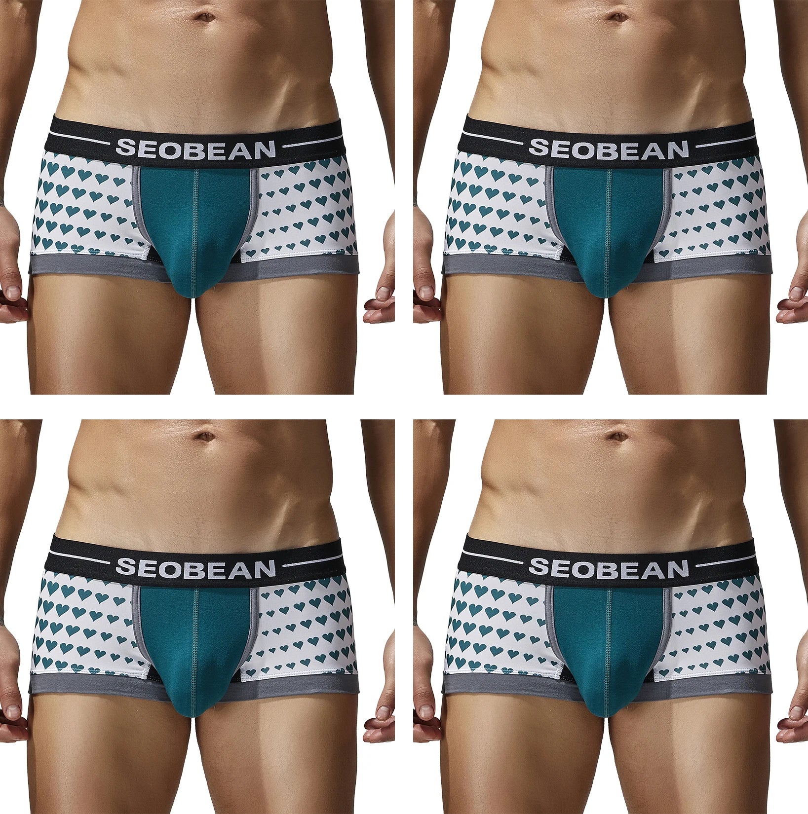 Seobean 4-Pack Men's Soft Comfortable Fashion Heart Boxer Briefs Lightweight Underwear for Daily Wear