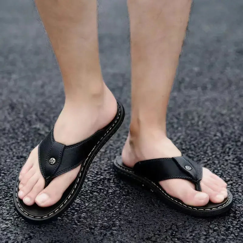 Shiatsu Men's Shoe Flat Flip Flops Leather Slides Beach Adult Comfortable Low Price Mascullino Designer Luxury Eva Male Slipper