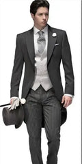 Slim Fit Groom Tuxedo Morning Style Groomsmen Peak Lapel Wedding/Dinner Suits Best Man Bridegroom (Jacket+Pants+Tie+Vest) B498